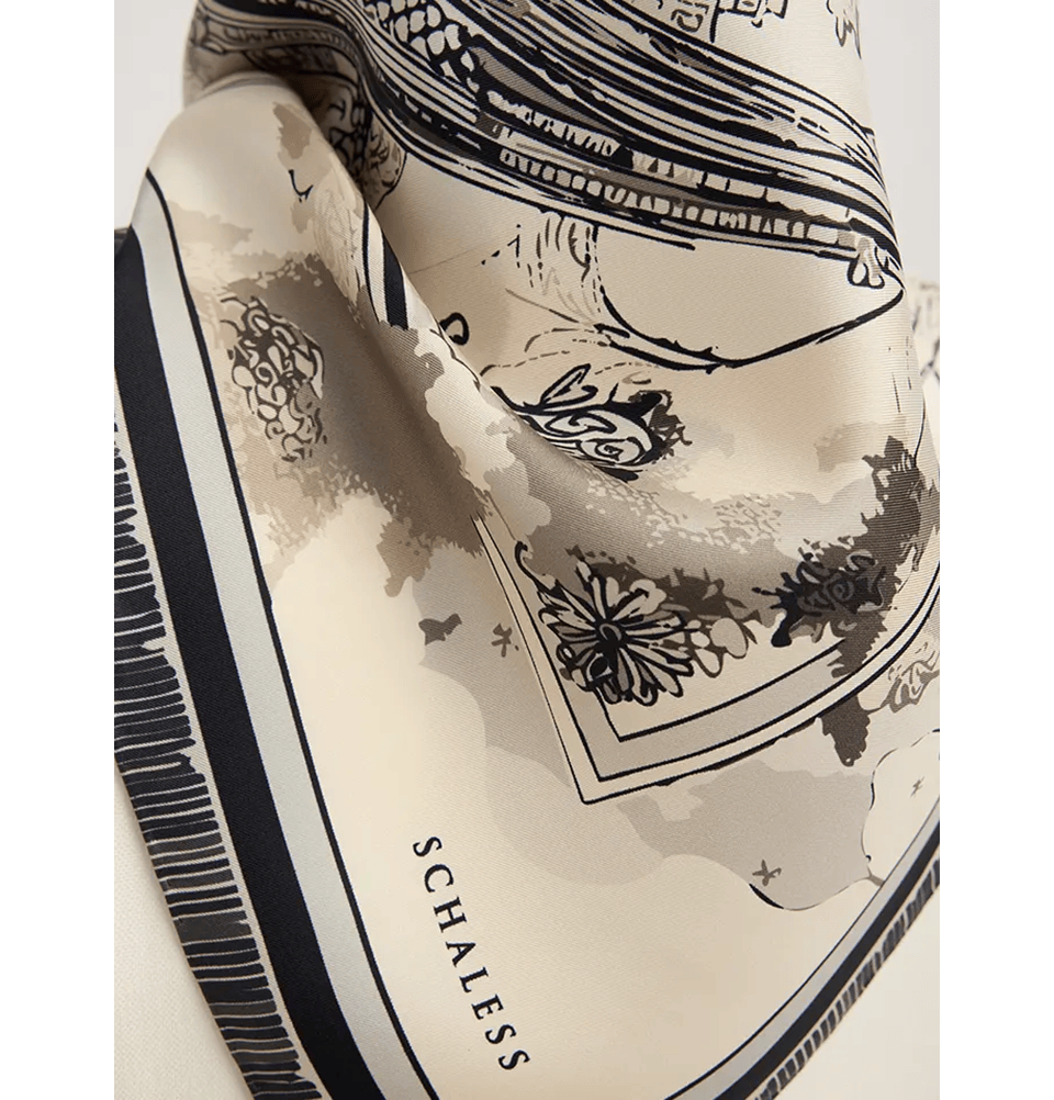 This elegant patterned silk twill scarf combines luxurious comfort with timeless style. Crafted from a soft, smooth fabric with a distinctive diagonal weave, it offers a beautiful drape and subtle sheen that enhances any outfit. The design's versatile color and pattern make it an ideal accessory for everyday wear or special occasions. Lightweight yet refined, this scarf can be worn in multiple ways - around the neck, over the shoulders, or styled with a bag for added flair.