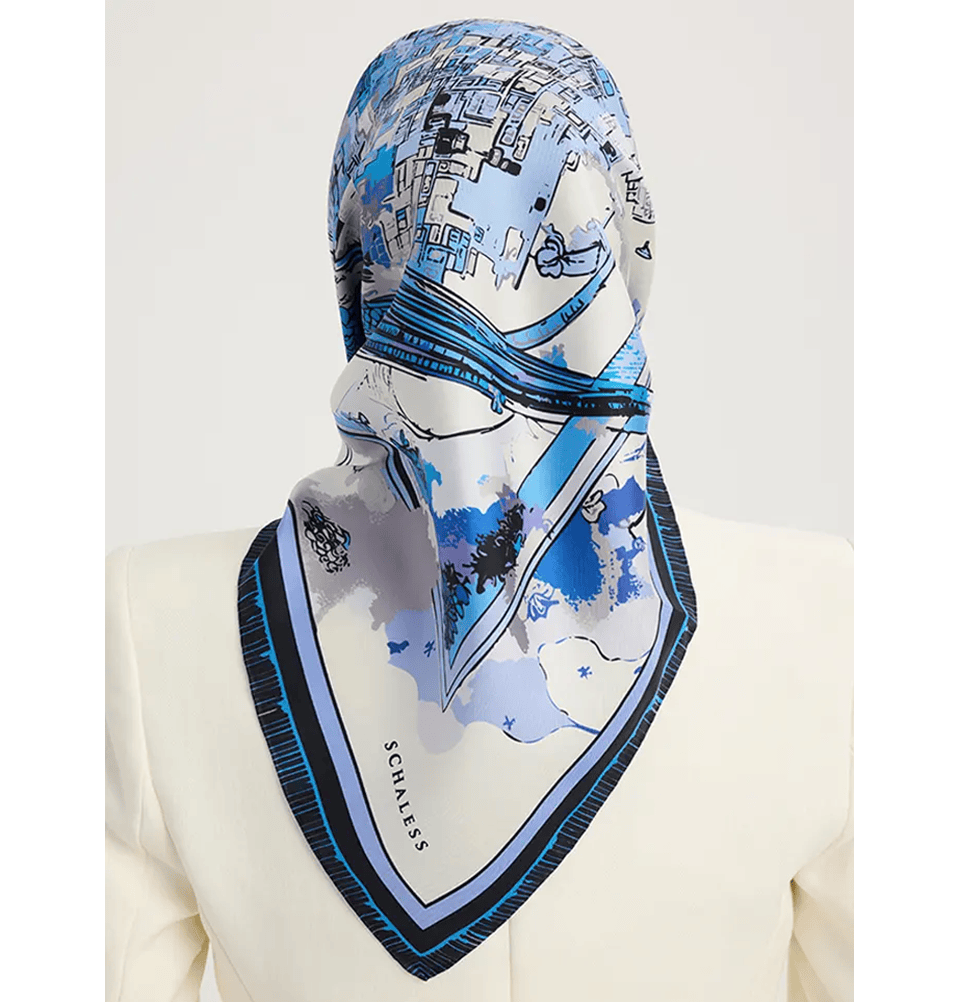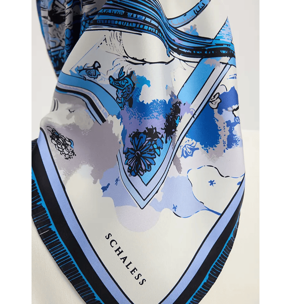 This elegant patterned silk twill scarf combines luxurious comfort with timeless style. Crafted from a soft, smooth fabric with a distinctive diagonal weave, it offers a beautiful drape and subtle sheen that enhances any outfit. The design's versatile color and pattern make it an ideal accessory for everyday wear or special occasions. Lightweight yet refined, this scarf can be worn in multiple ways - around the neck, over the shoulders, or styled with a bag for added flair.