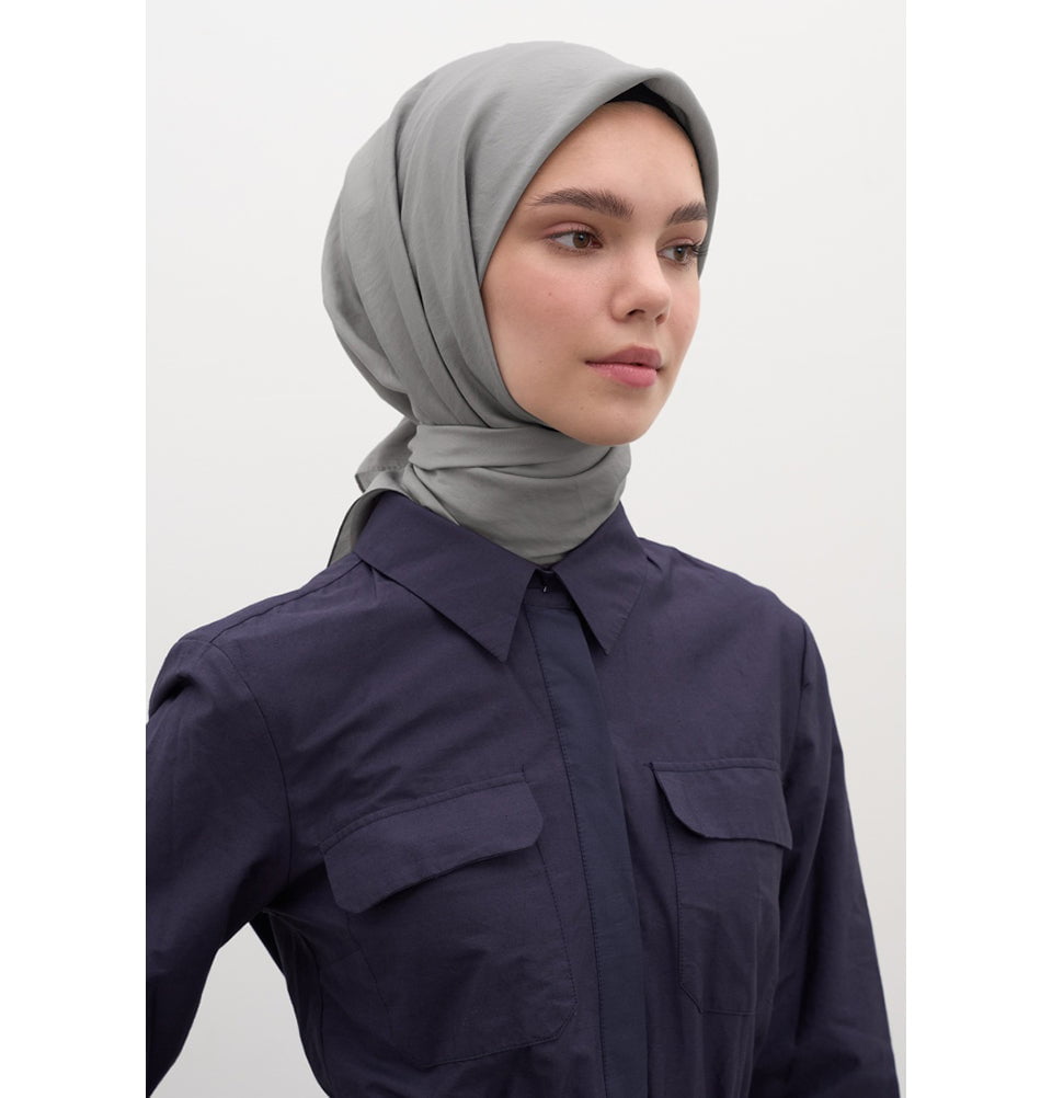 Solid Viscose Cotton Square Hijab - Silver