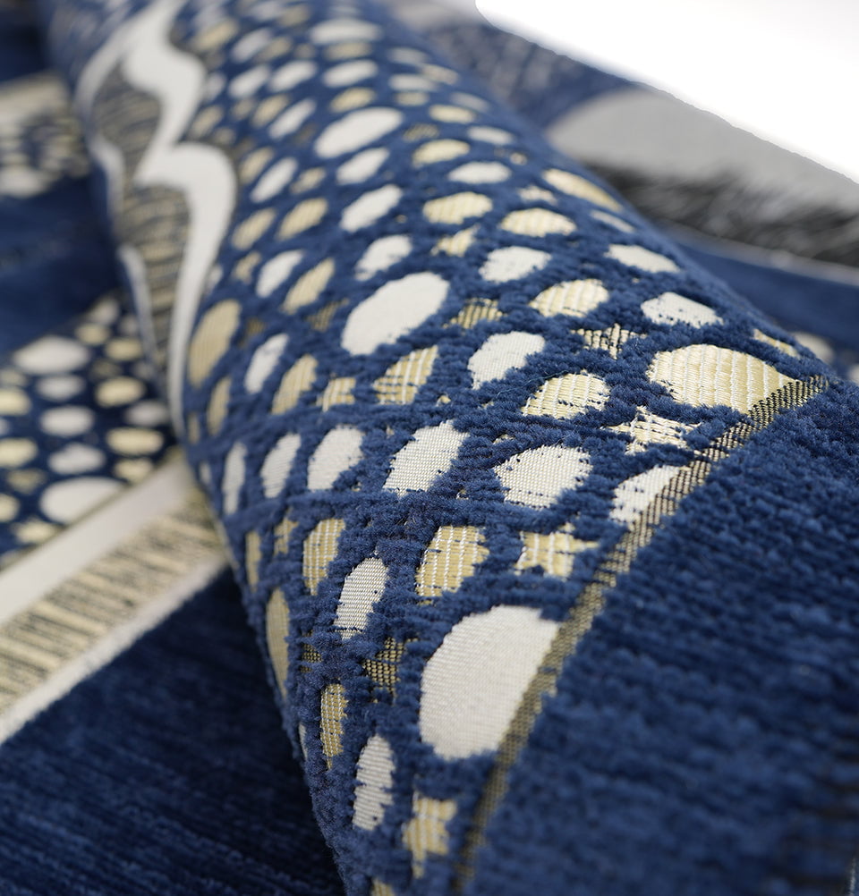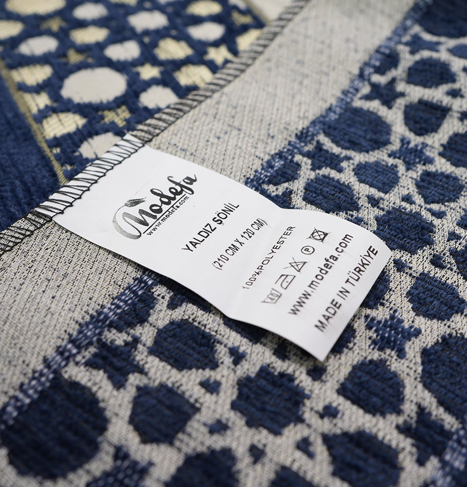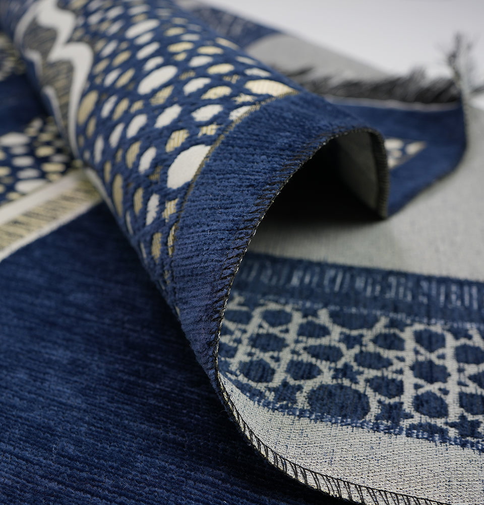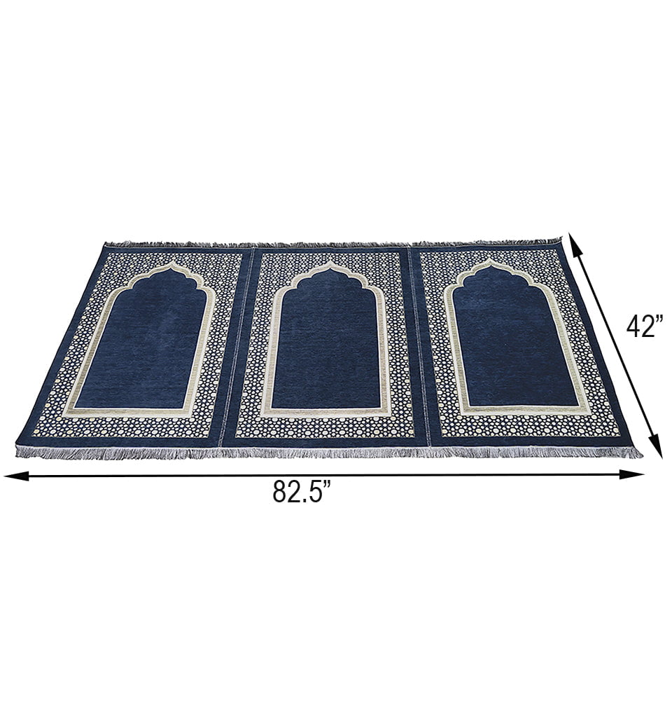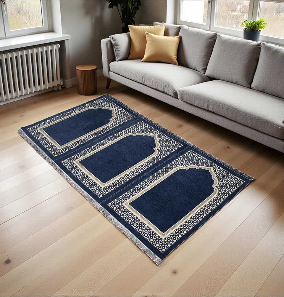 Wide 3 Person Masjid Islamic Prayer Rug - Chenille Embroidered Selcuk Star - Navy Blue