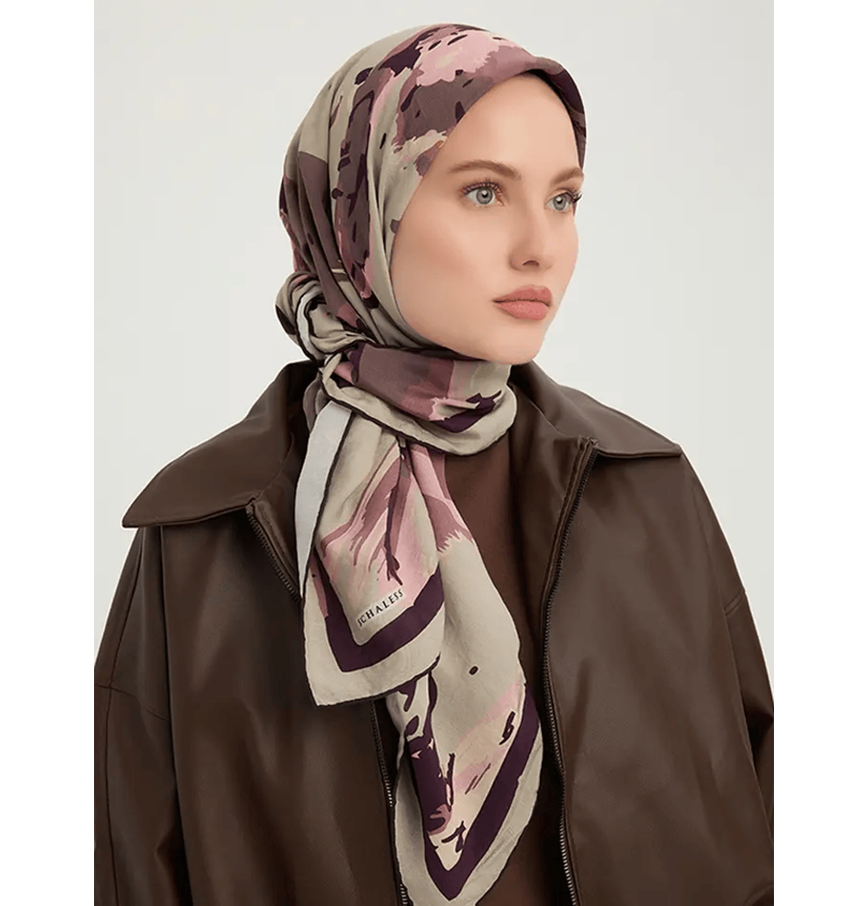 Vierra Viscose Square Hijab - Abstract Flowers Mink