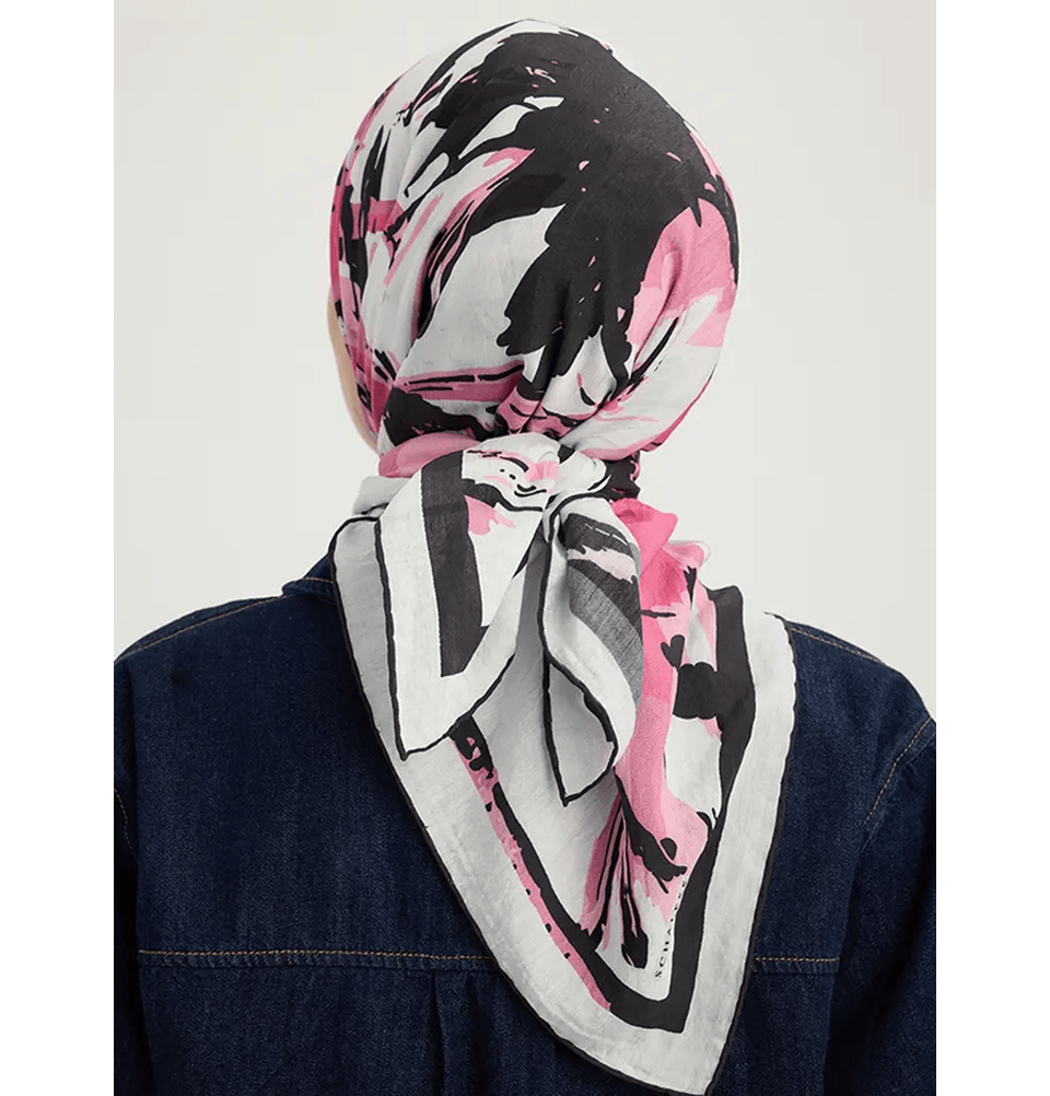 Vierra Viscose Square Hijab - Abstract Flowers Pink