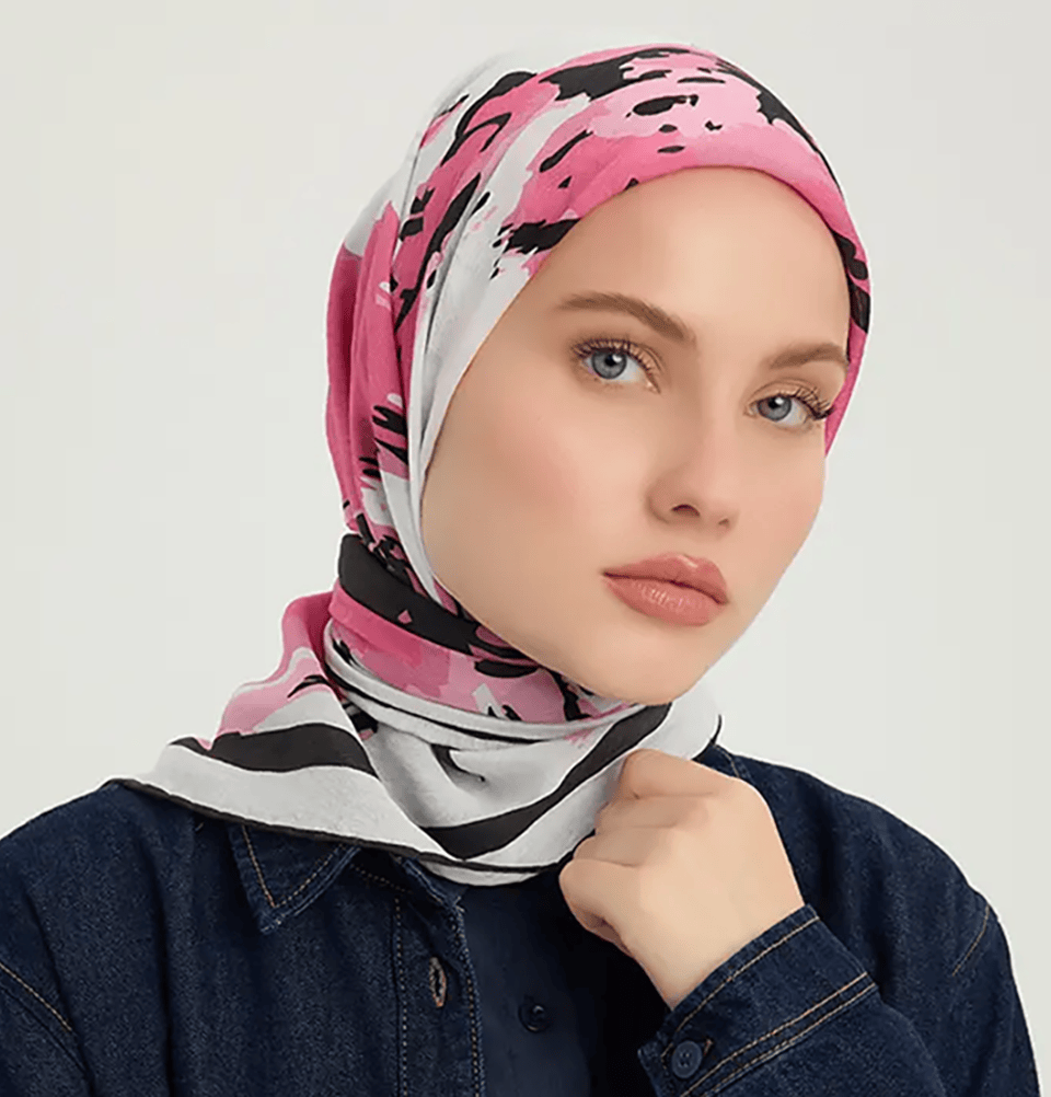Vierra Patterned Viscose Blend Hijab - Abstract Flowers Pink