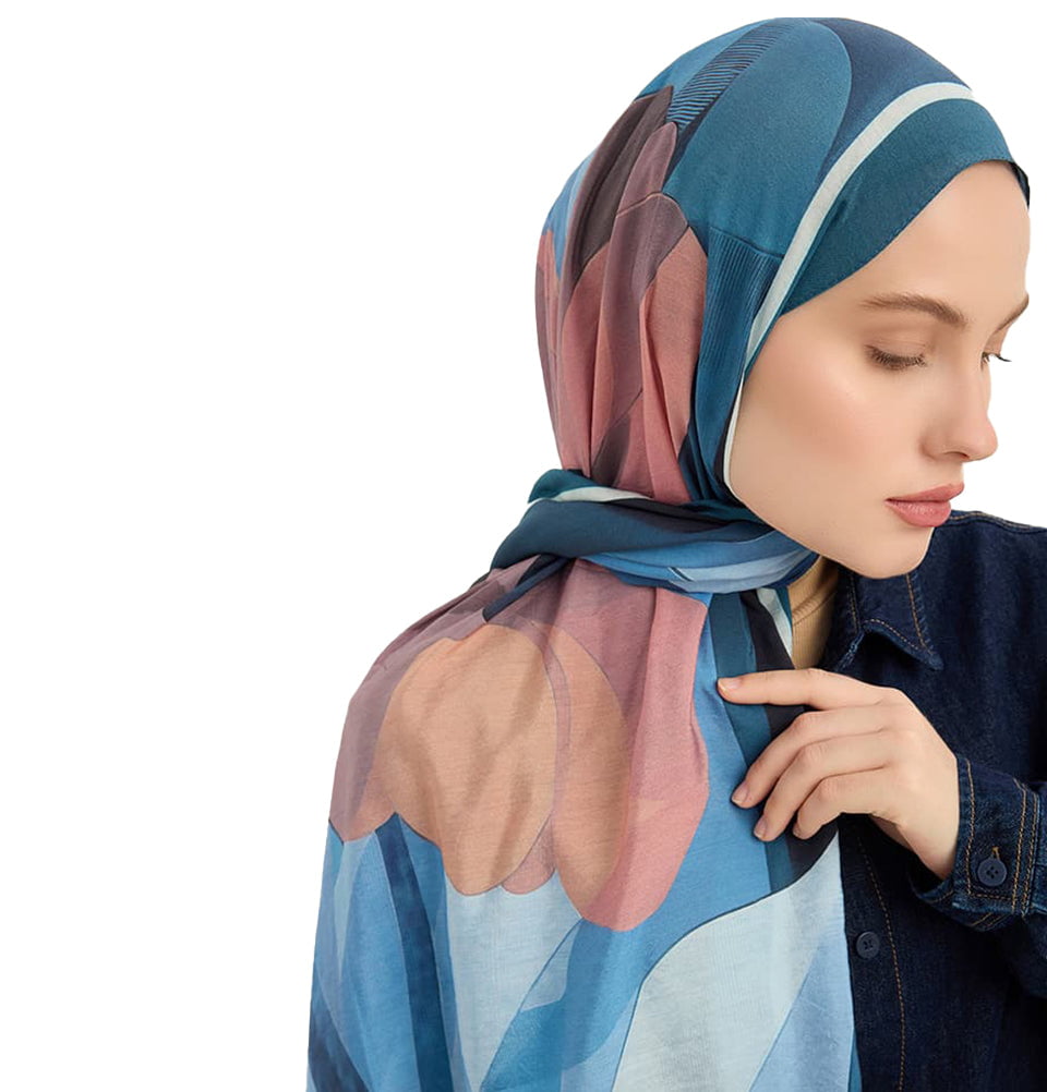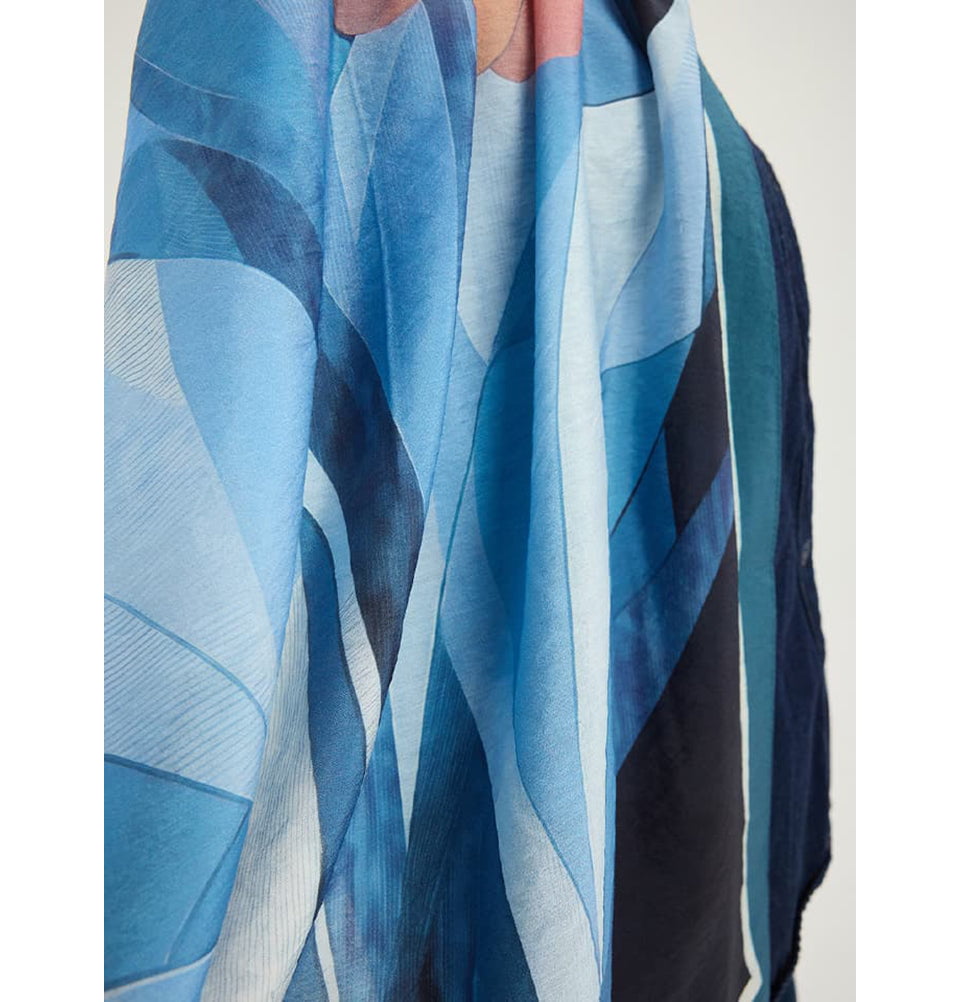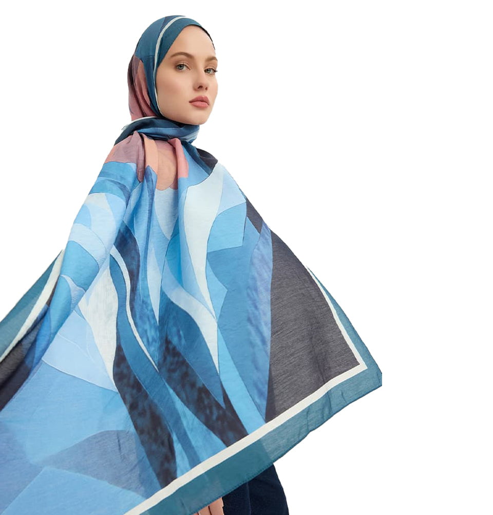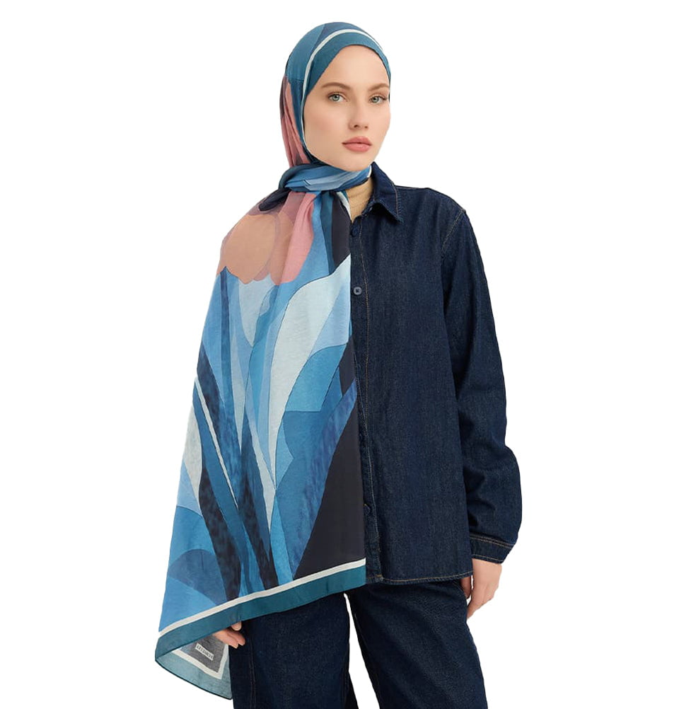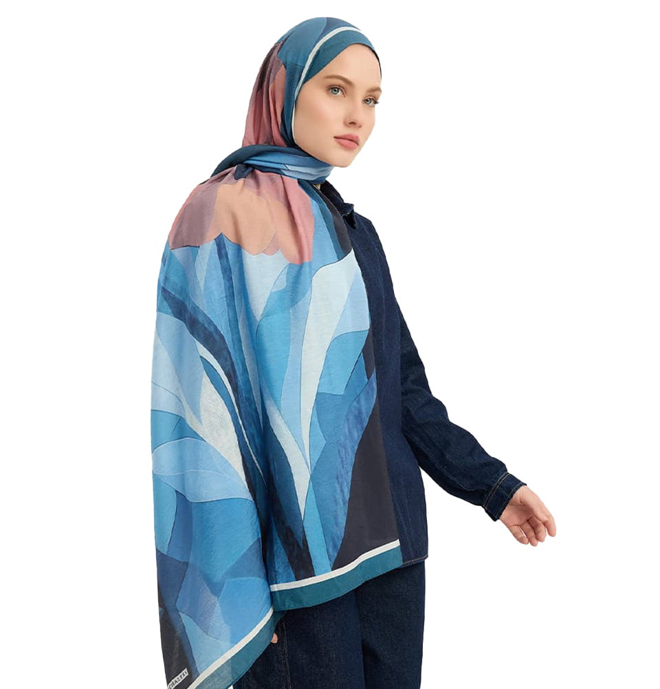 Vierra Viscose Shawl Hijab Luminous Flowers - Blue