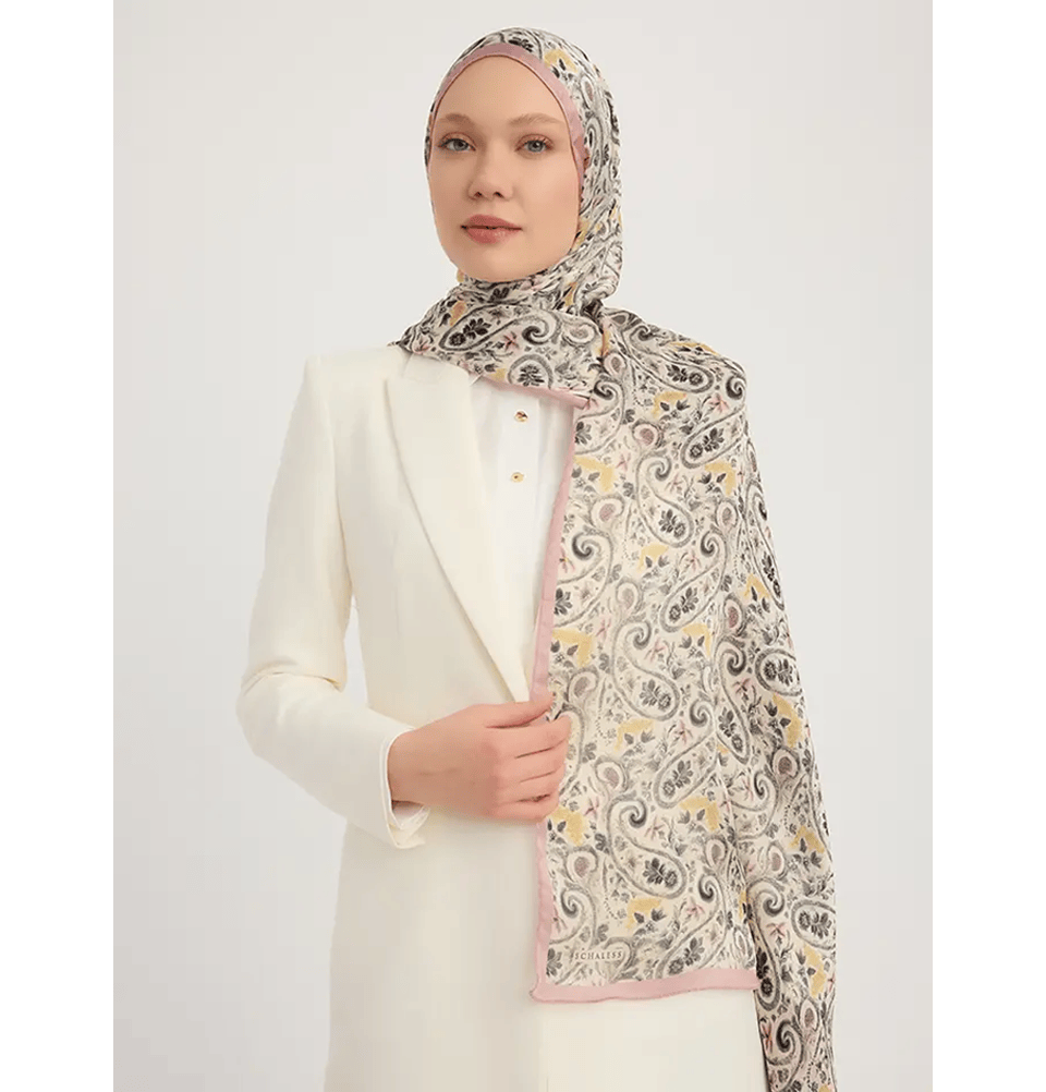 The Aurora Satin Ethnic Spring Shawl is an elegant paisley floral-patterned shawl in a calm and light contrasting colors that enhances the floral print of this hijab. Designed to blend timeless botanical motifs with a subtle shimmering finish ("janjanlı"), this shawl adds a touch of refined style to both casual and dressy outfits. Its rich hue and lightweight feel make it perfect for everyday wear or special occasions alike.