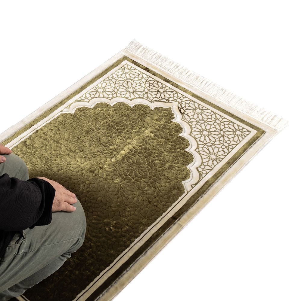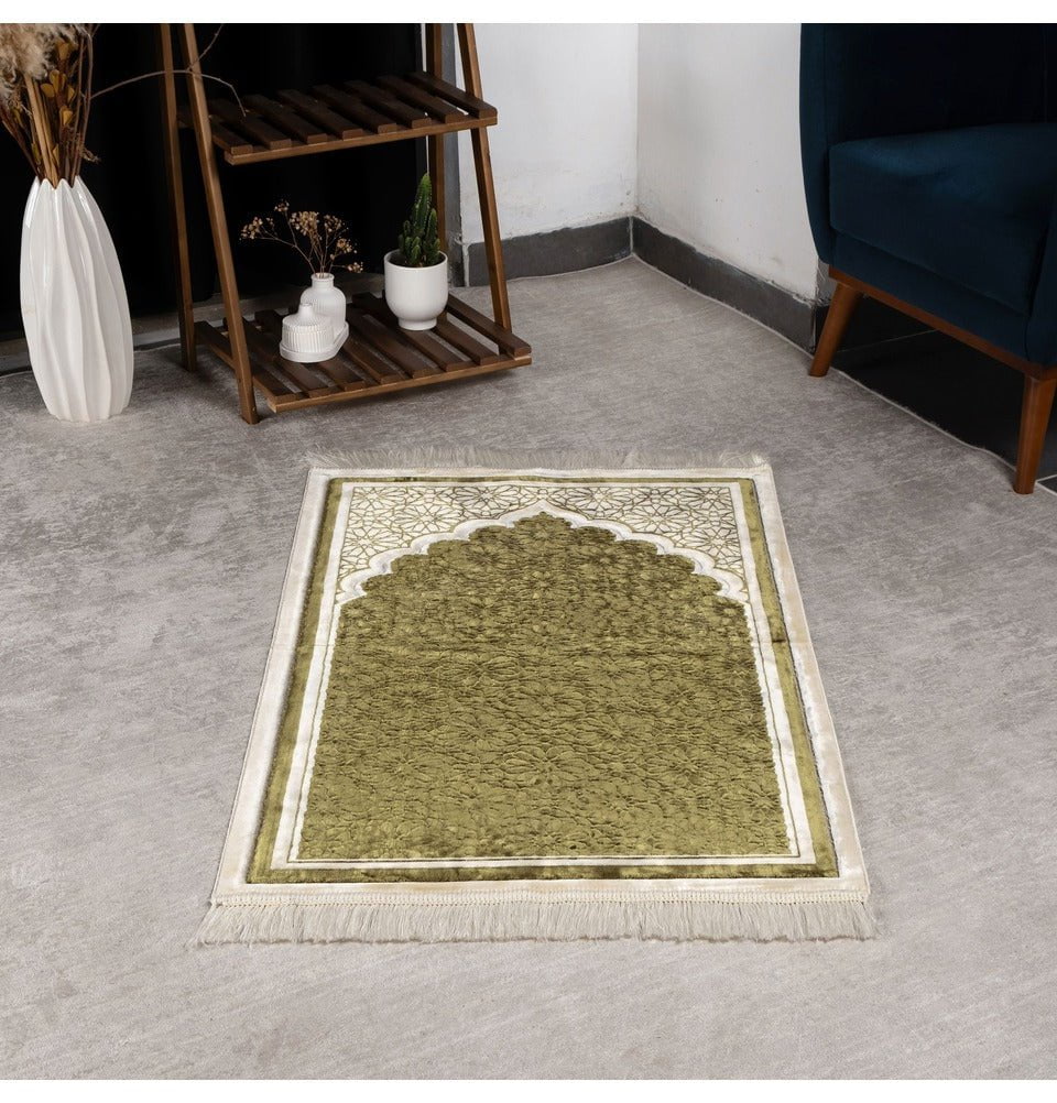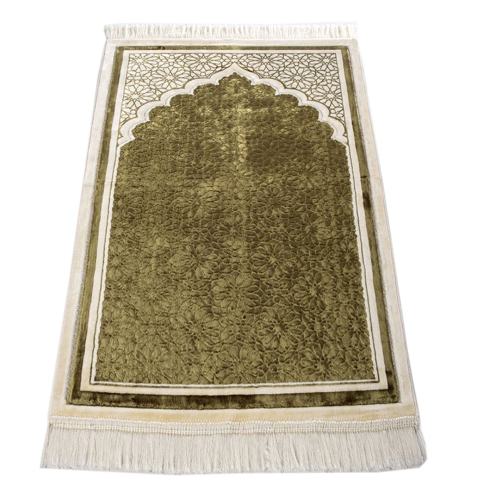Hidaya Plush Islamic Prayer Rugs - Olive Green