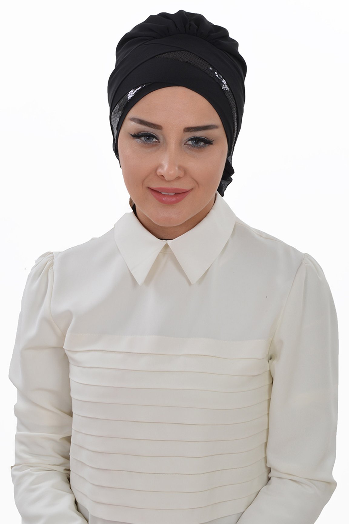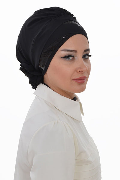 Instant Chiffon Turban Hijab Sequin Black