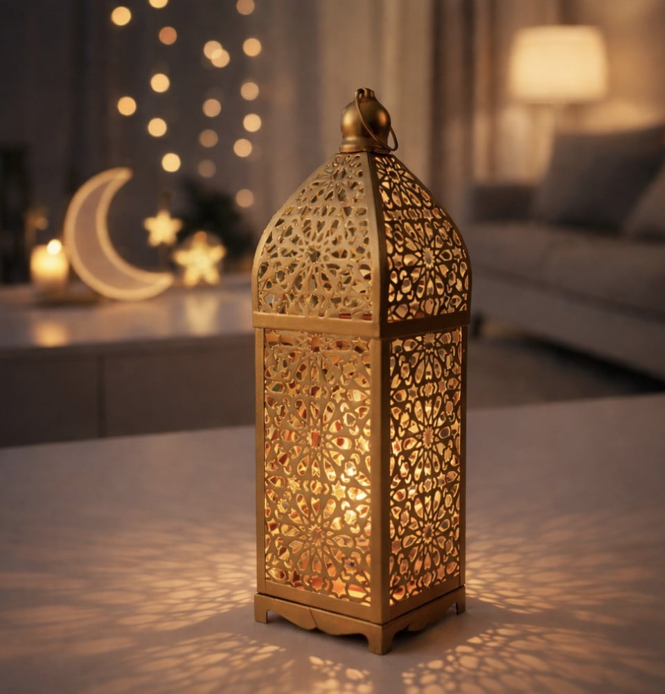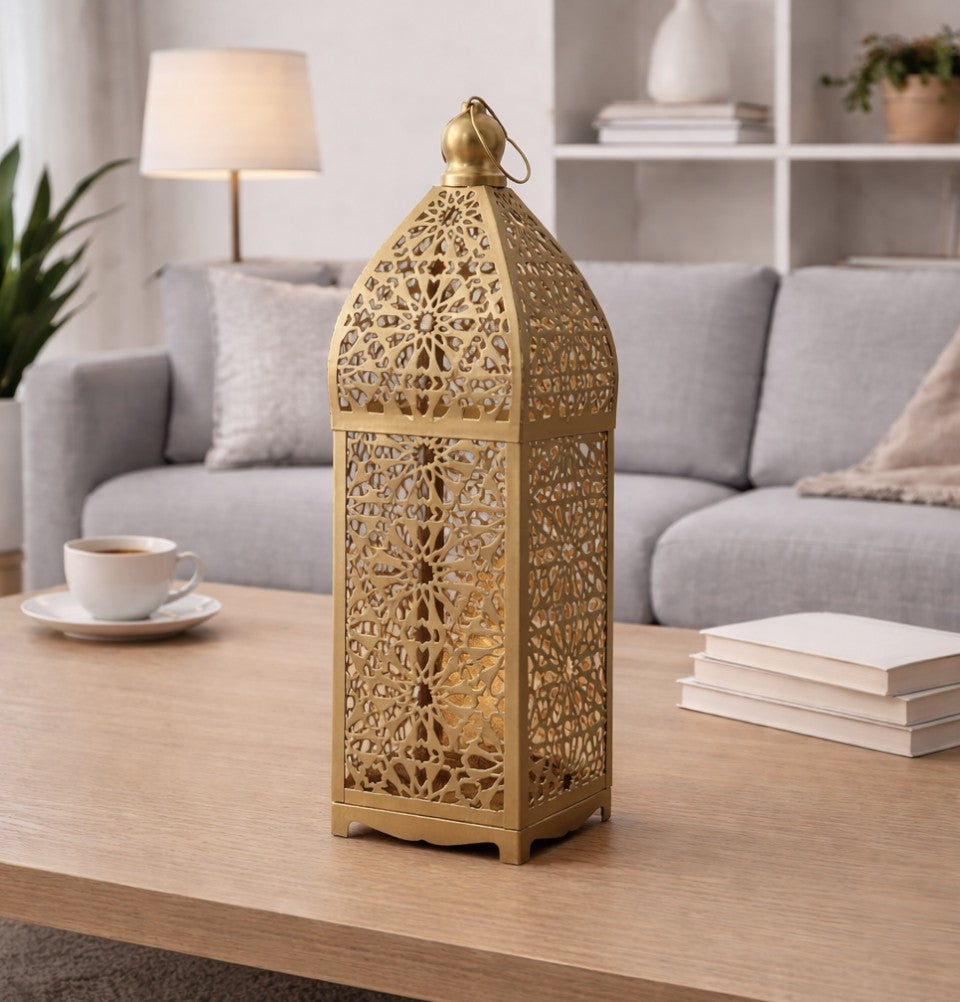 Islamic Holiday Decor | Selcuk Patterned Lantern 13.5in - Gold