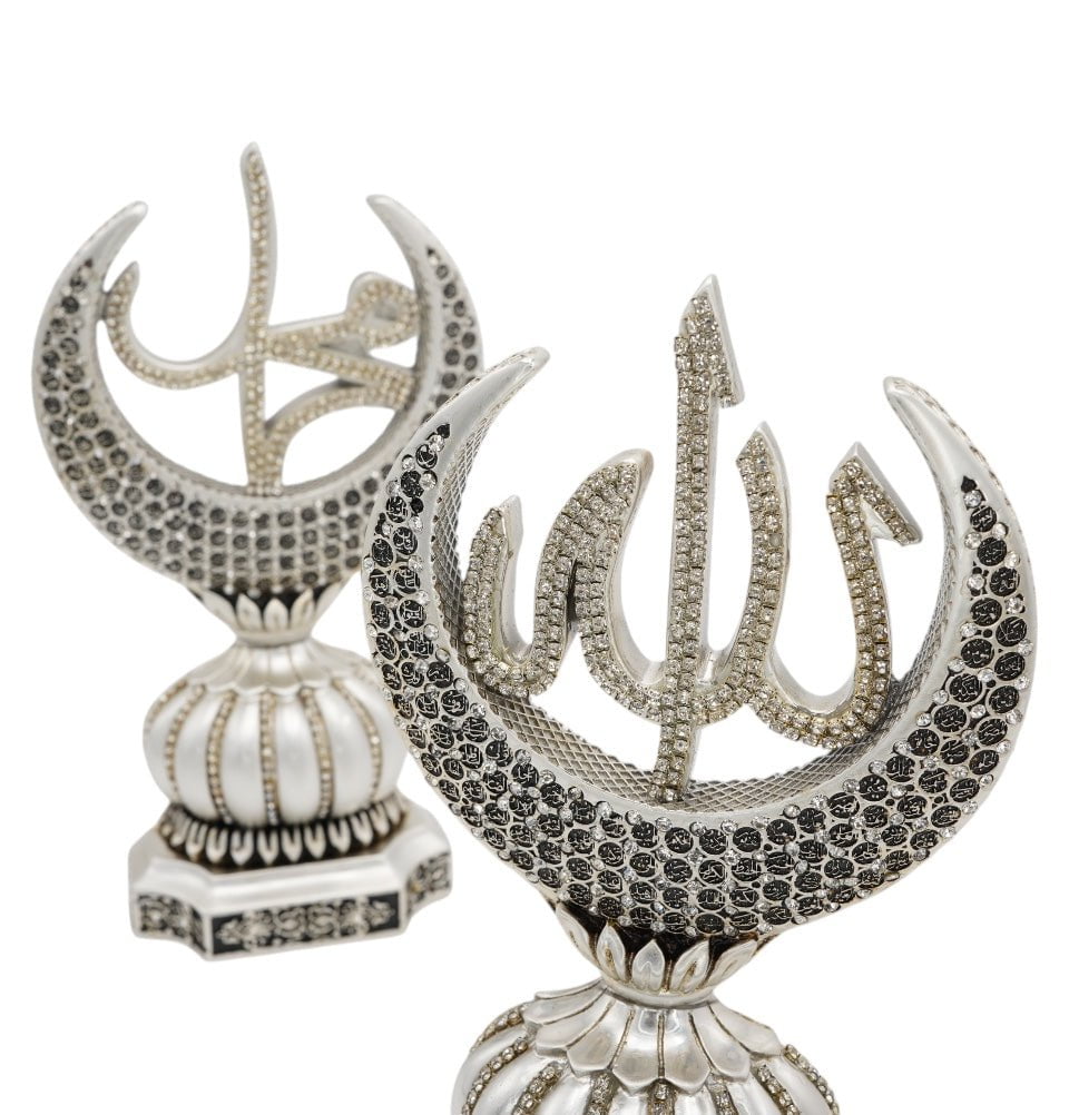 Islamic Table Decor Allah & Muhammad & 99 Names Crescent Set - Silver