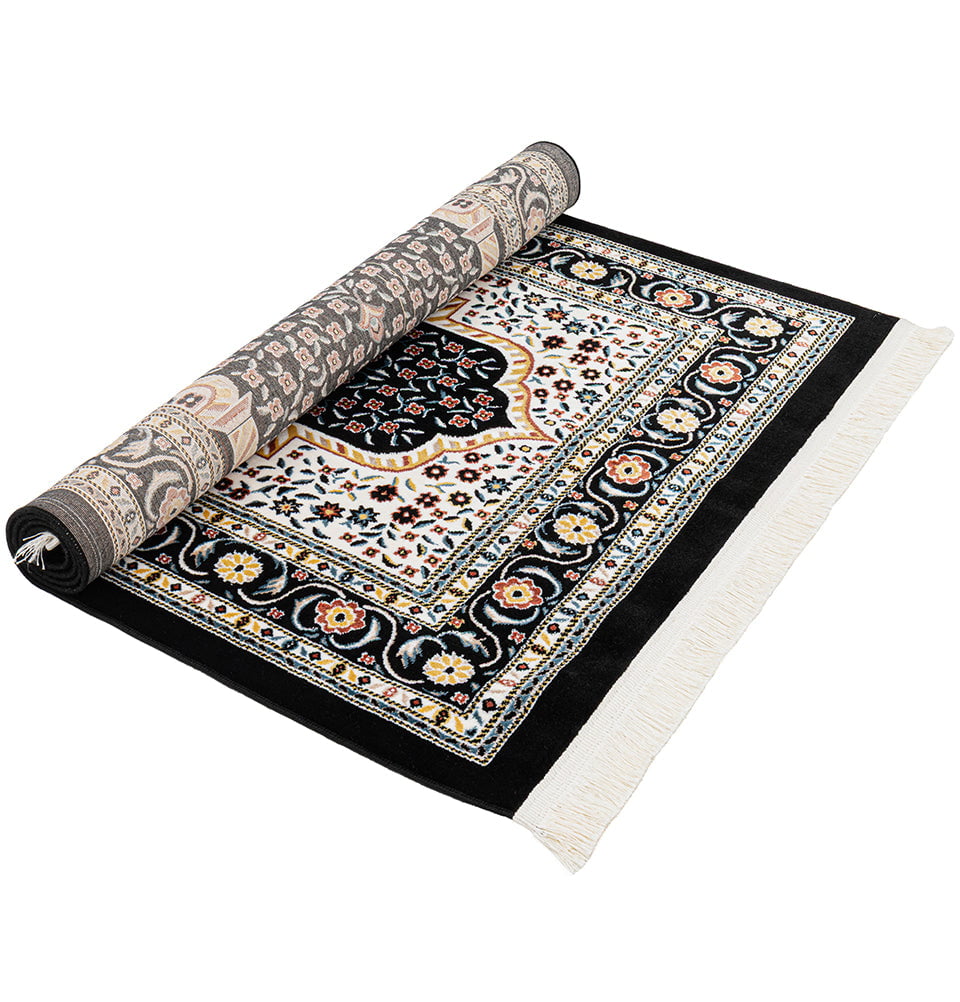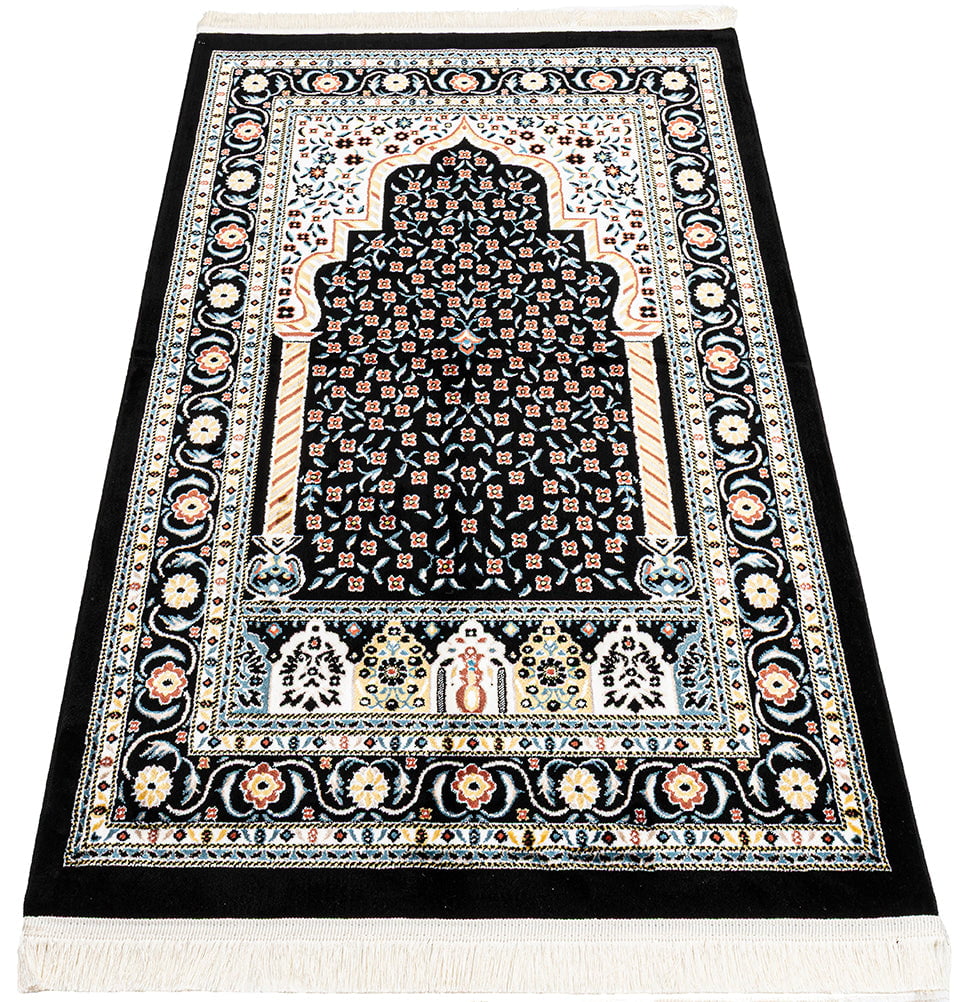 Lavanta Luxury Velvet Islamic Prayer Rug Daisy - Black
