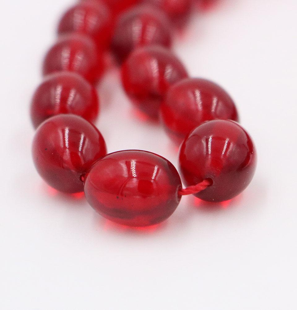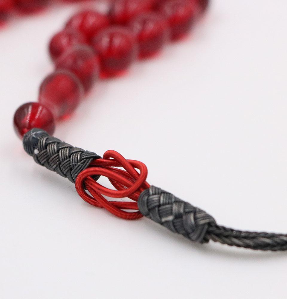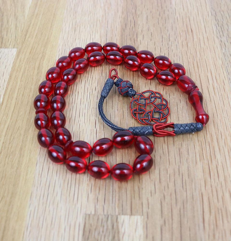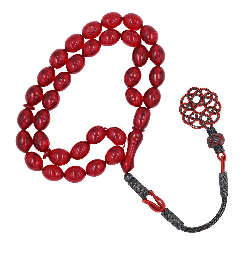 Luxury Islamic Tesbih Real Amber & Sterling Silver Kazaz Tassel with 33 Count Large Red Oval Beads