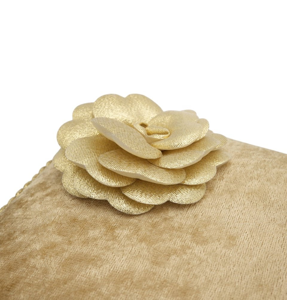 ~ 1 Velvet gift box with a gold clasp, pearl handles, a flower decoration on the outer case, and gold border lines.