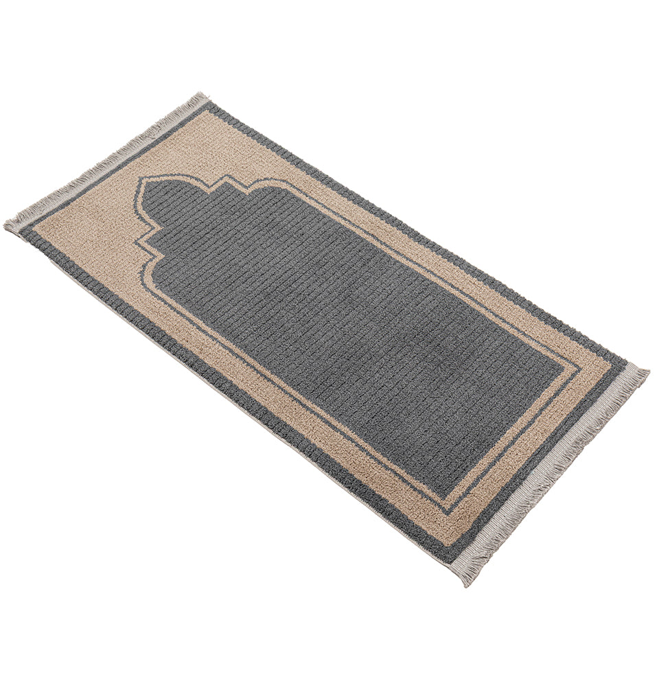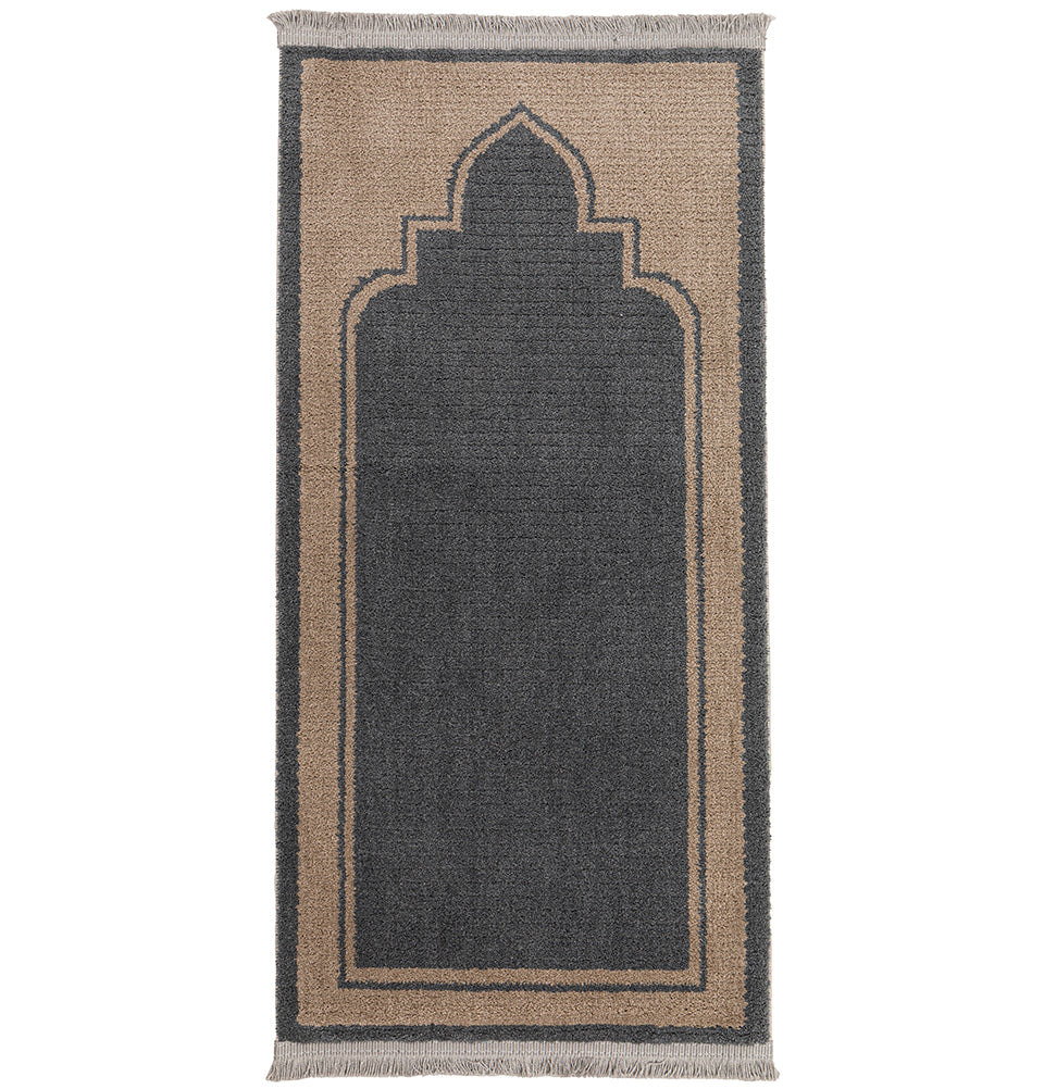 Luxury Velvet Islamic Prayer Rug Child - Geometric Arch Brown Grey