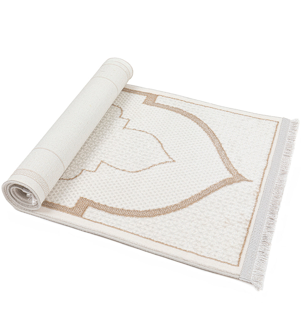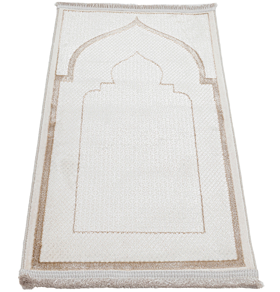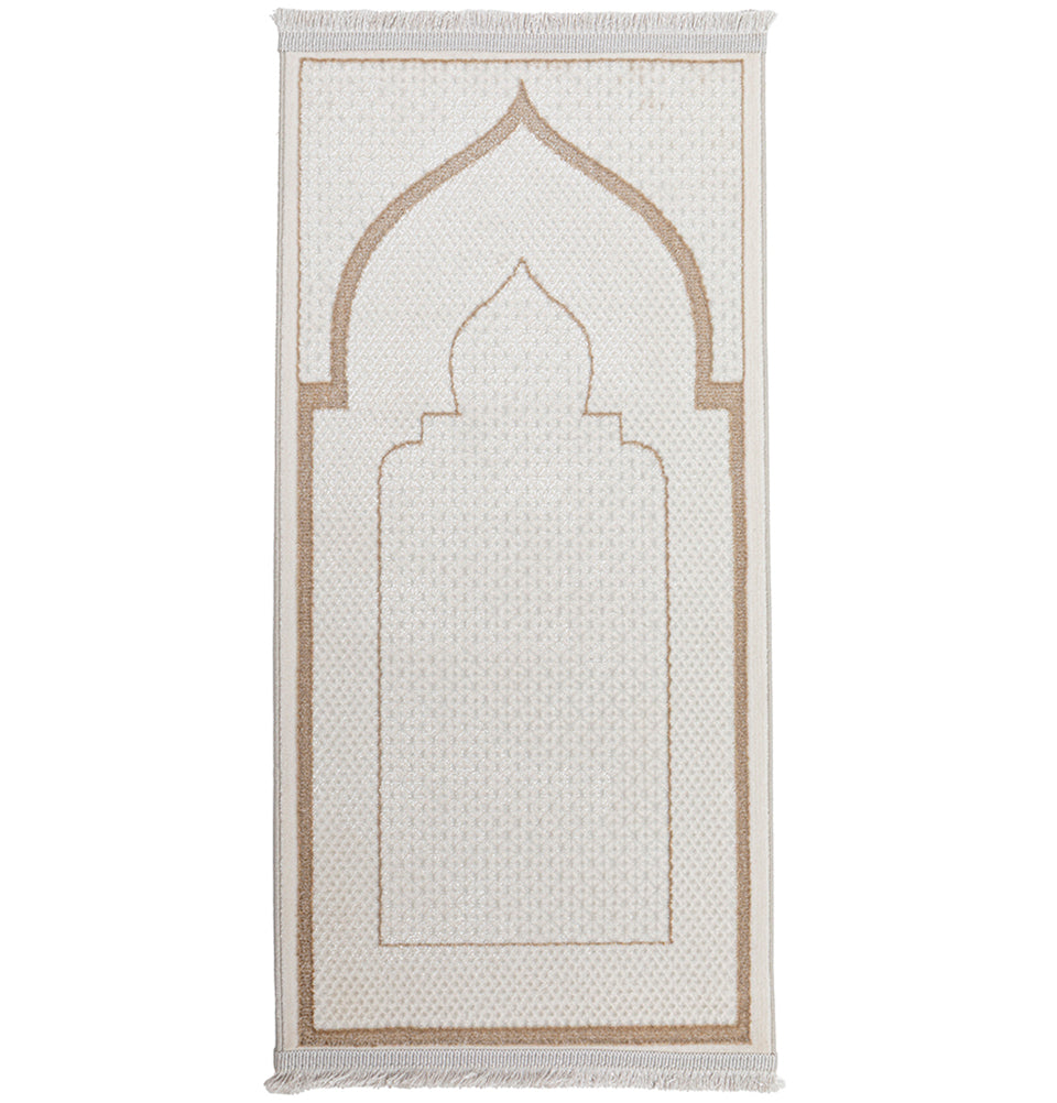 Luxury Velvet Islamic Prayer Rug Child - Mihrab Beige