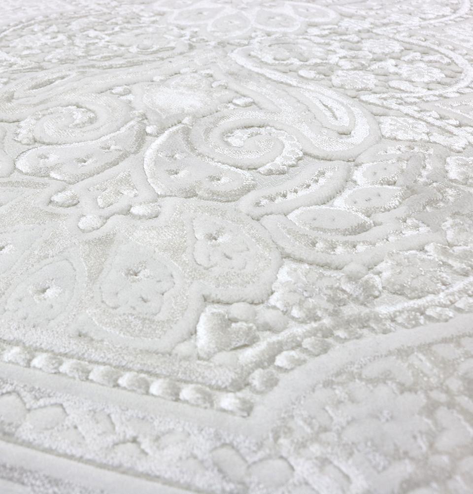 This gift box set comes with 1 x Prayer Rug, 1 x Prayer Beads, displayed in a gift box as pictured. This luxurious white velvet rug has an enchanting and luxurious sheen that makes it shimmer in the light, and look different shades depending on the angle. The repeating floral pattern adds beauty, but the monotone shade keeps it simple and not distracting. Not to mention, it is oh-so-soft to the touch.