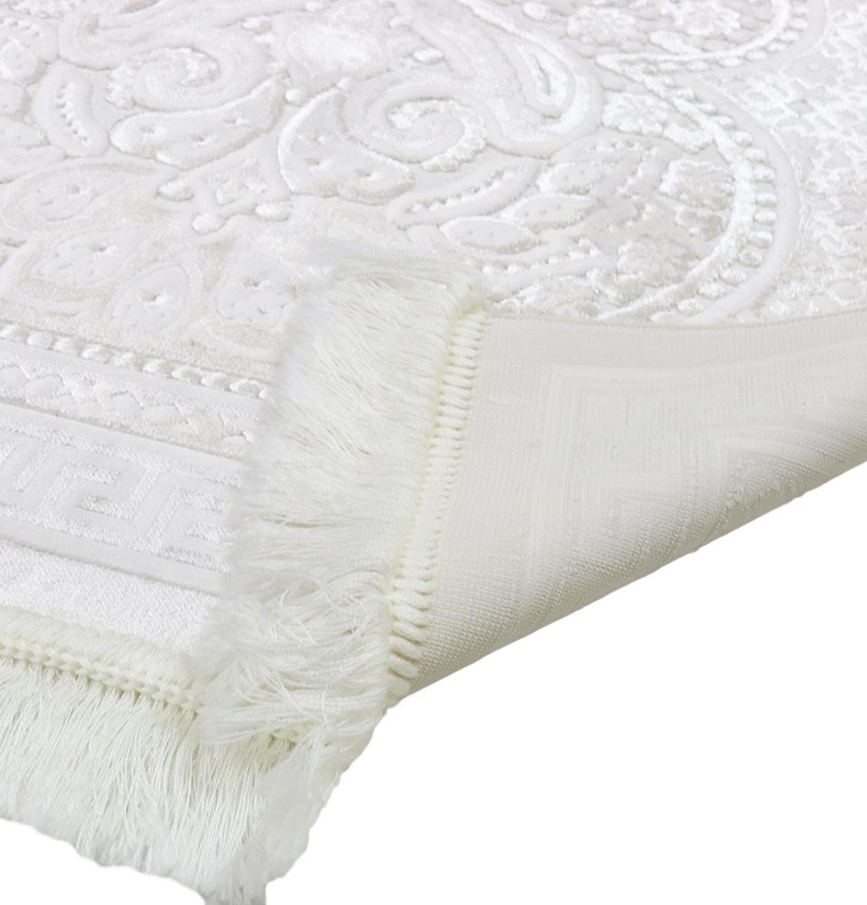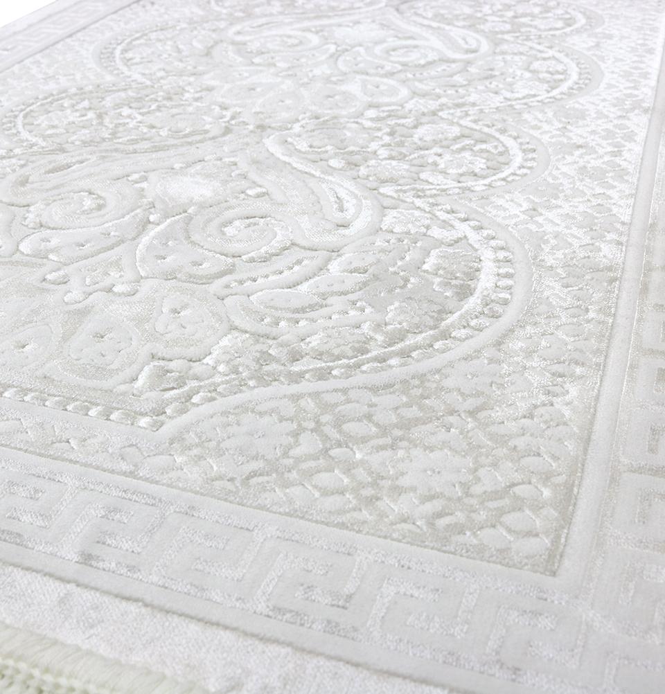 Luxury Velvet Prayer Rug Ramadan Gift Box Set with Prayer Beads - Paisley Vanilla White