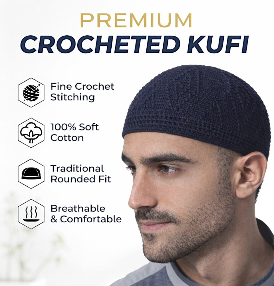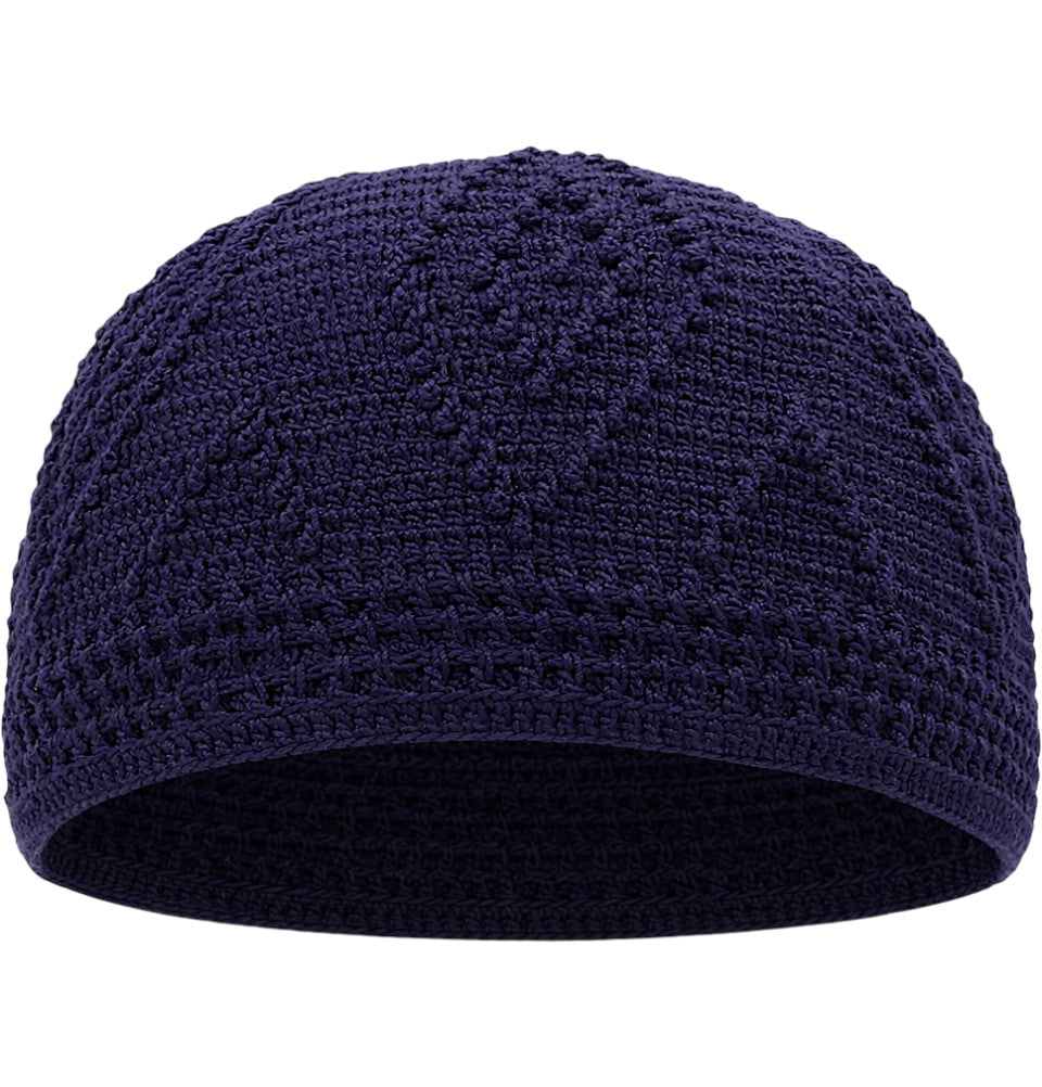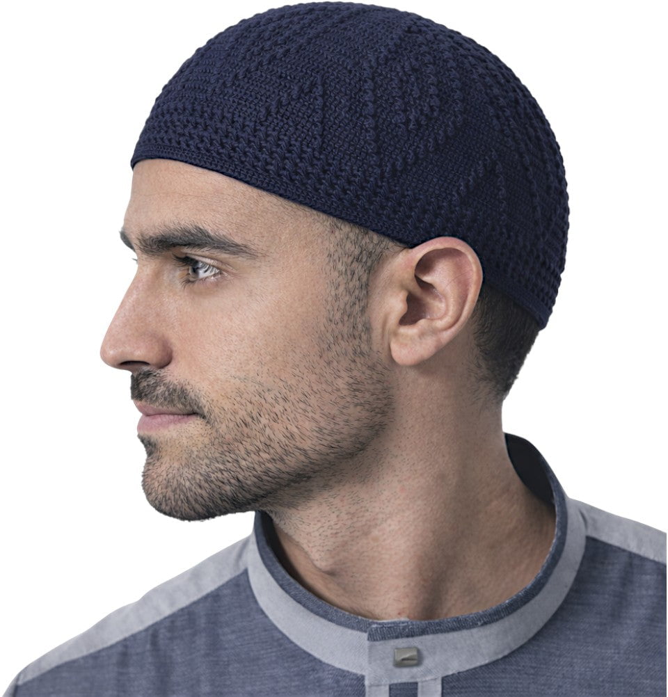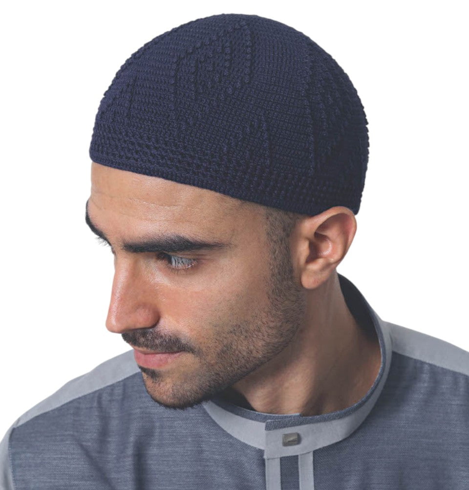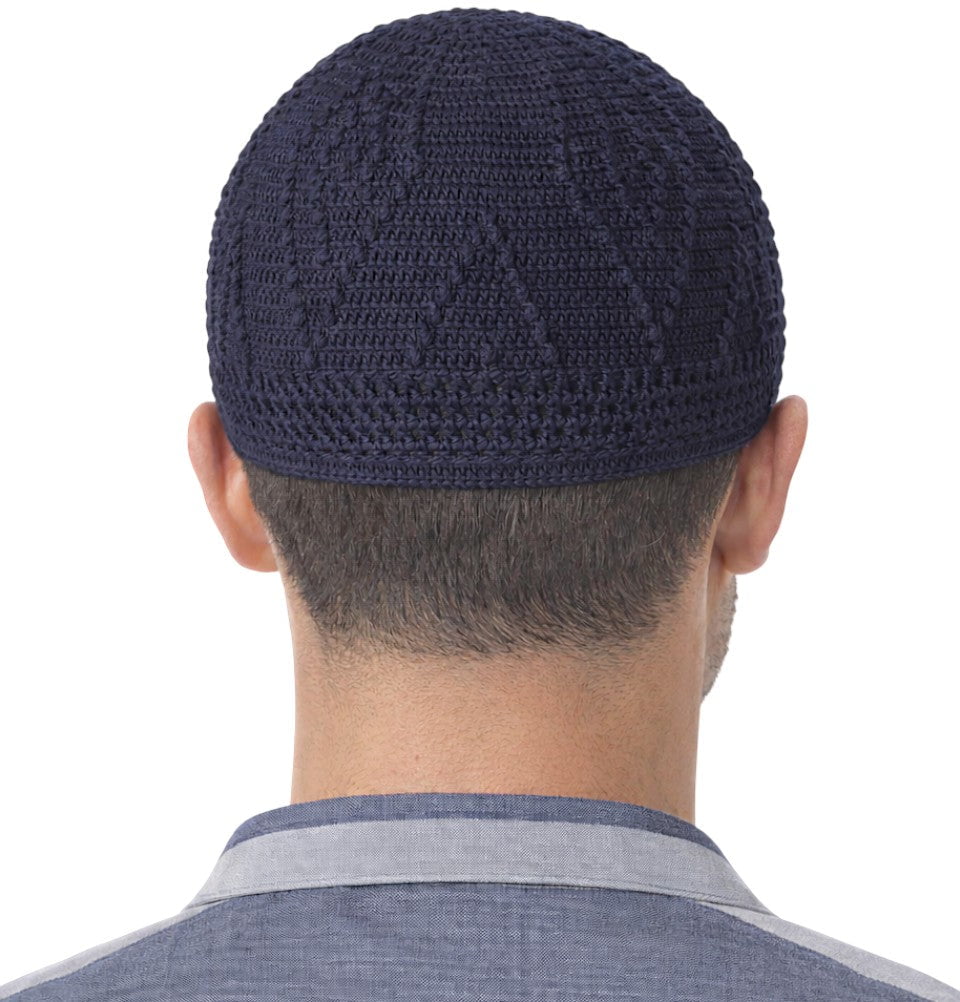 Men's Islamic Knitted Cotton Geometric Kufi - Navy Blue