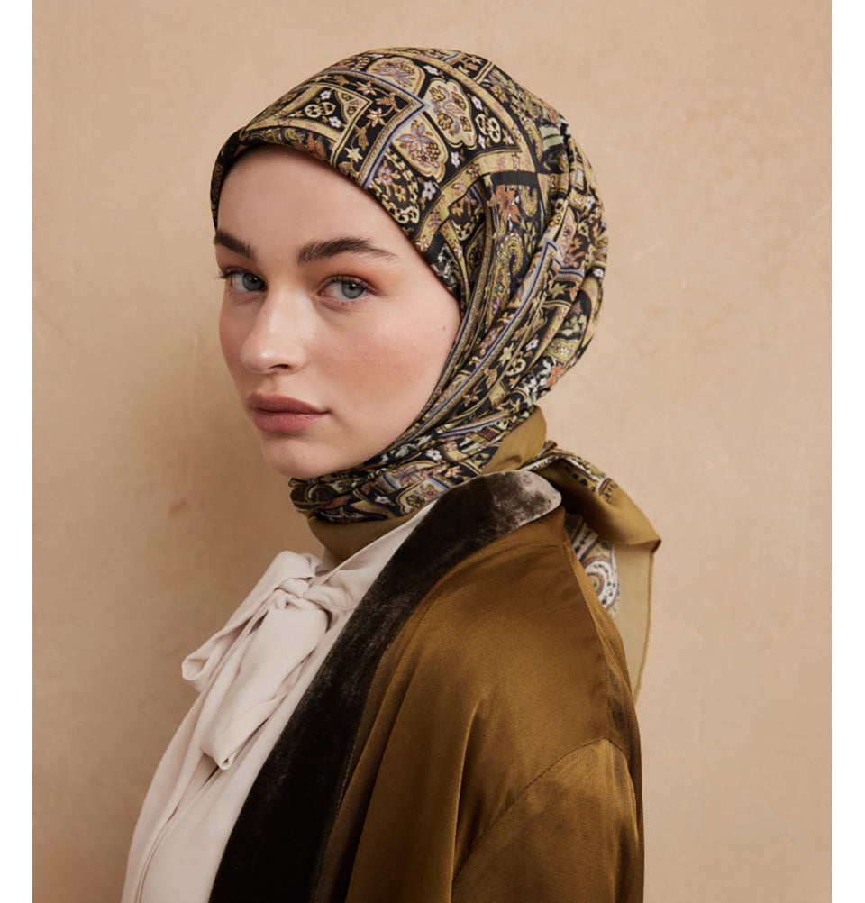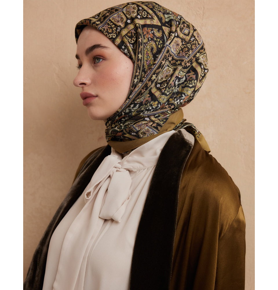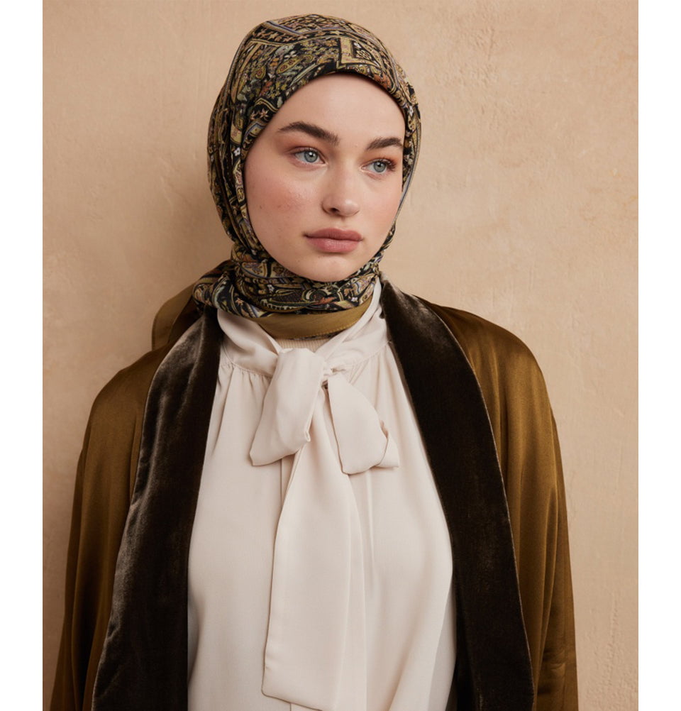 Modal Silk Blend Bohemian Breeze Nordic Square Hijab - Green