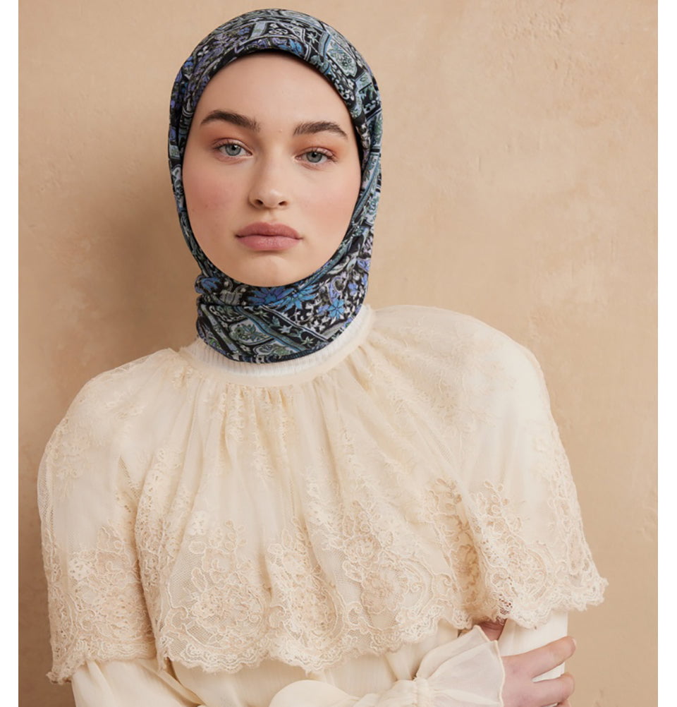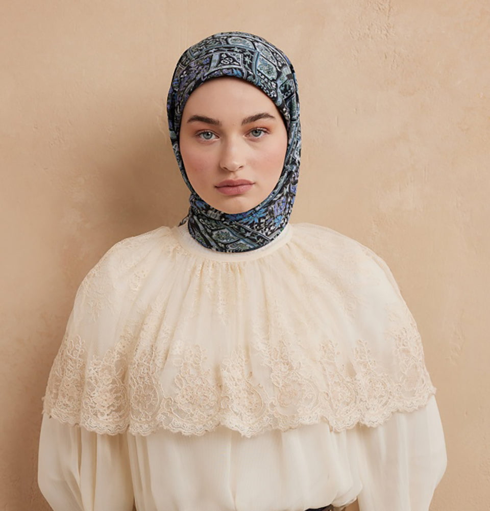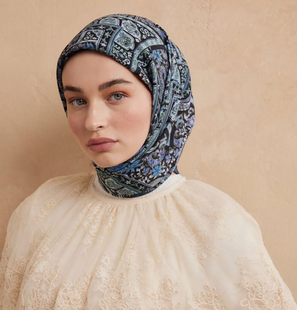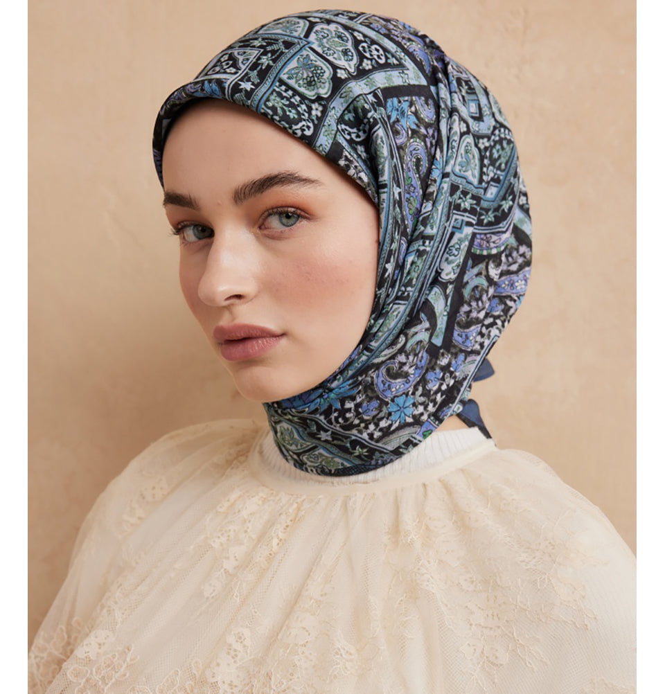 Modal Silk Blend Bohemian Breeze Nordic Square Hijab - Indigo
