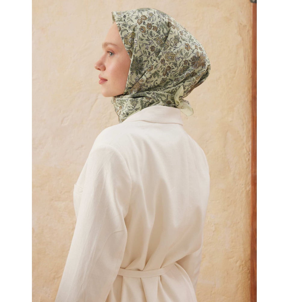 Patterned Viscose Cotton Square Hijab Morocco - Soft Green