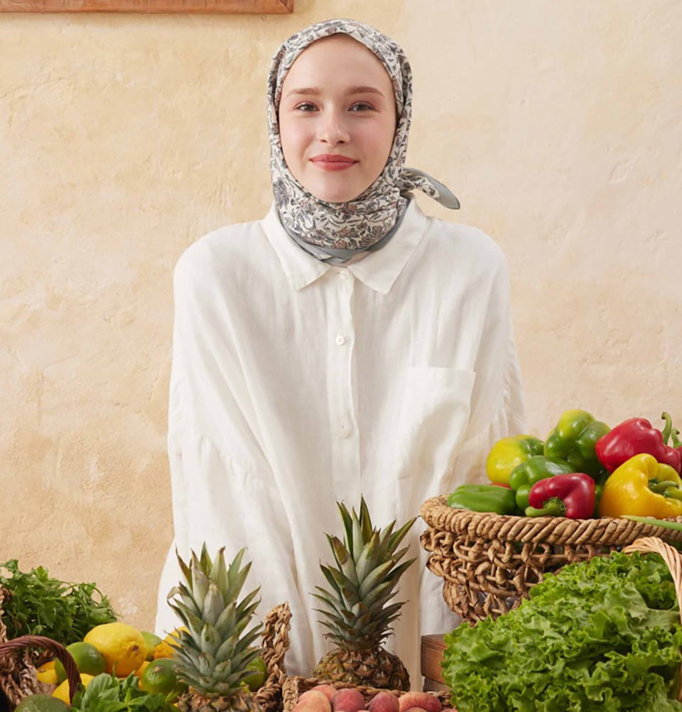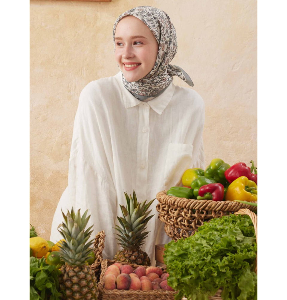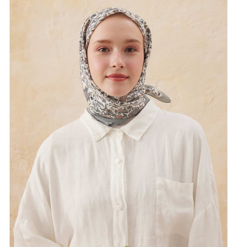 Soft, timeless, and effortlessly elegant, this patterned square hijab blends classic floral and paisley motifs with everyday wearability. The intricate all-over print adds visual depth without overpowering the look, making it a versatile choice for both casual styling and polished outfits. Crafted from a premium cotton-viscose blend, the fabric feels smooth yet breathable, offering lightweight comfort throughout the day.
