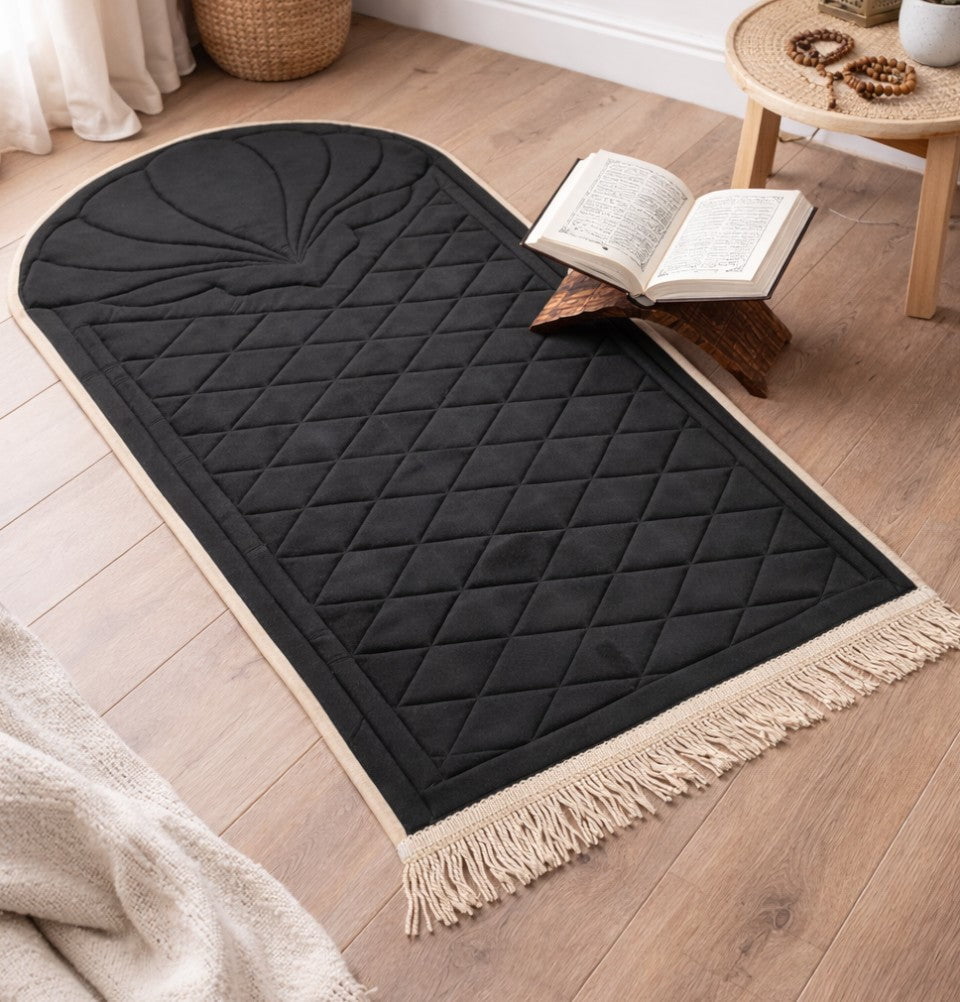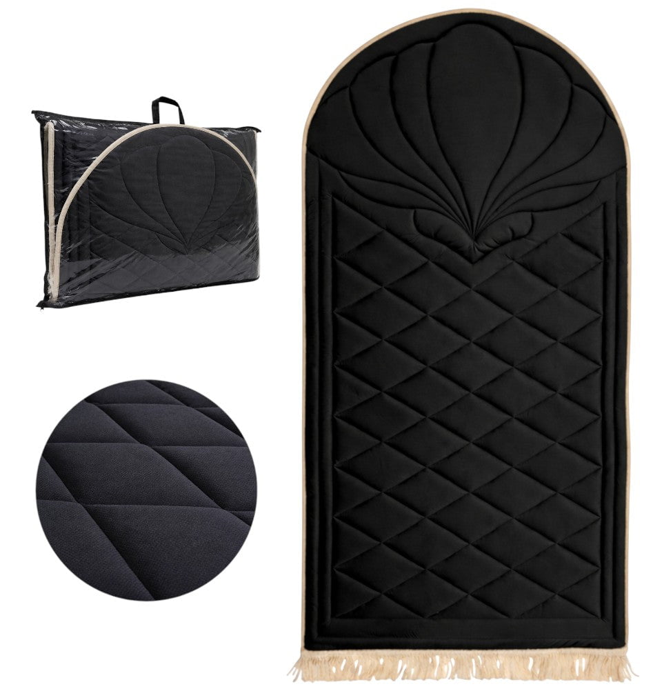 Quilted Foldable Foam Velvet Prayer Rug Safaa - Black