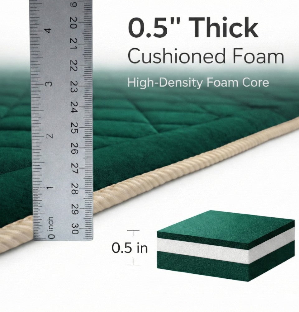 The velvet surface feels smooth and gentle, while the light foam padding provides added comfort without extra bulk. The rug folds neatly and stores easily, making it perfect for those who value both comfort and portability. It's simple, elegant, and practical - everything you want in a daily prayer rug.