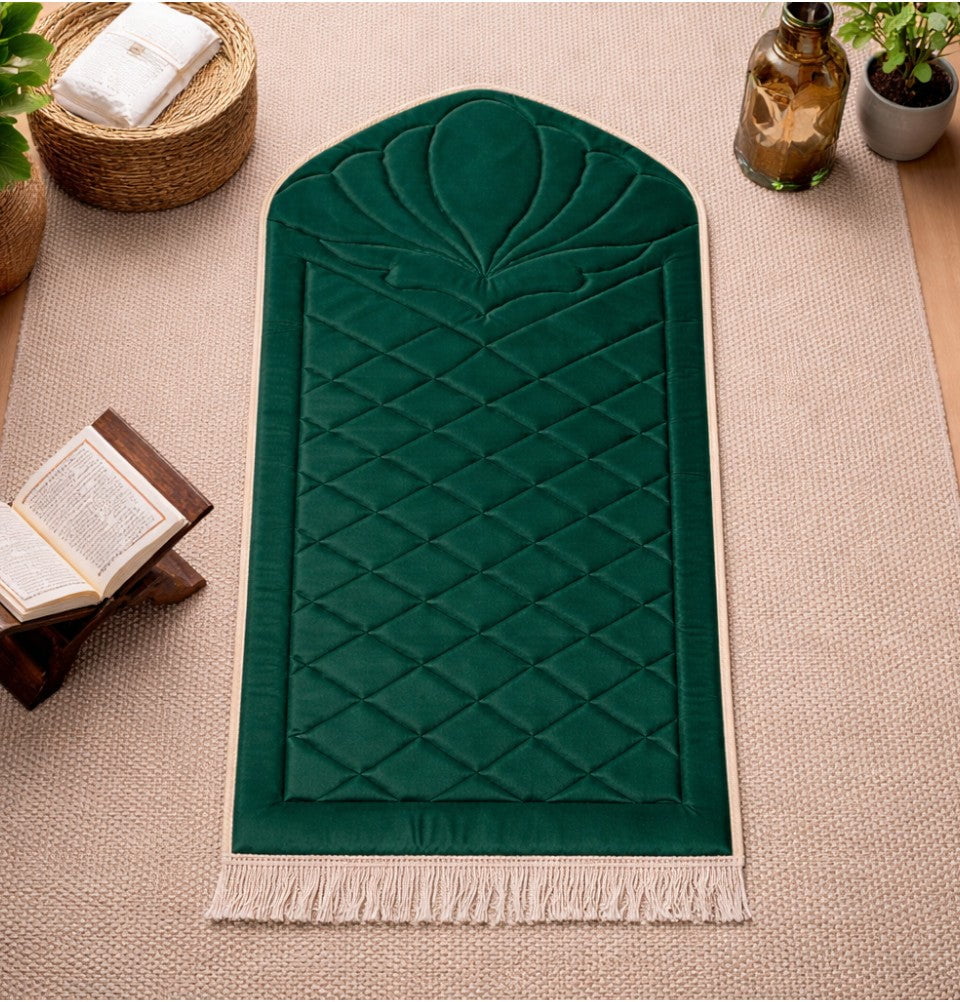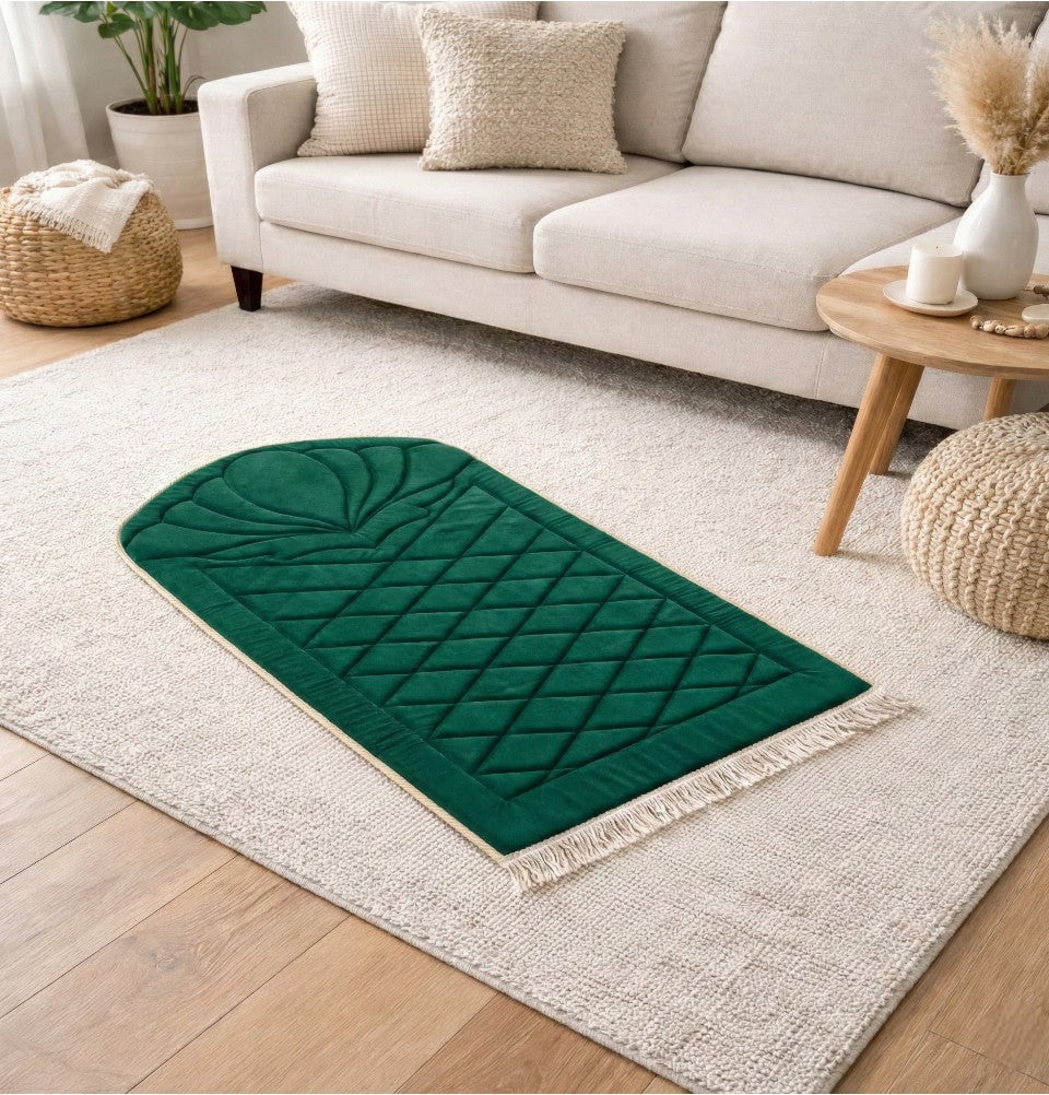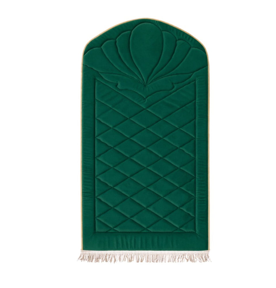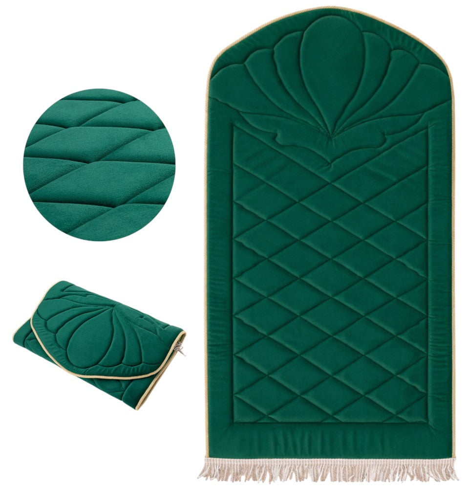 Quilted Foldable Foam Velvet Prayer Rug Safaa - Emerald Green