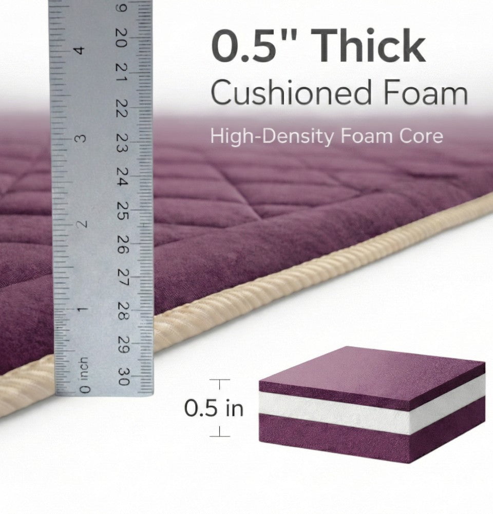 The velvet surface feels smooth and gentle, while the light foam padding provides added comfort without extra bulk. The rug folds neatly and stores easily, making it perfect for those who value both comfort and portability. It's simple, elegant, and practical - everything you want in a daily prayer rug.