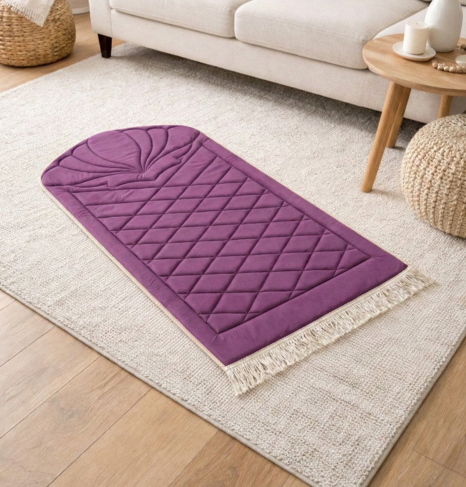 Quilted Foldable Foam Velvet Prayer Rug Safaa - Purple