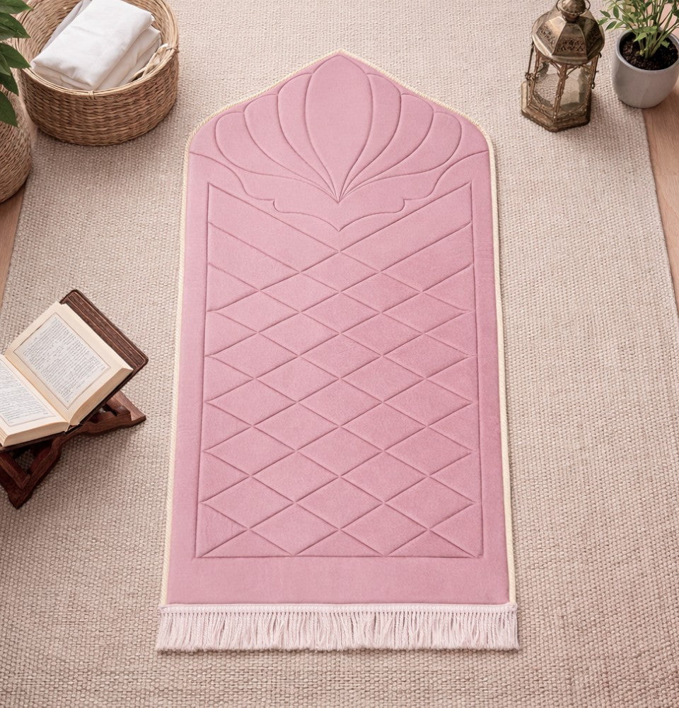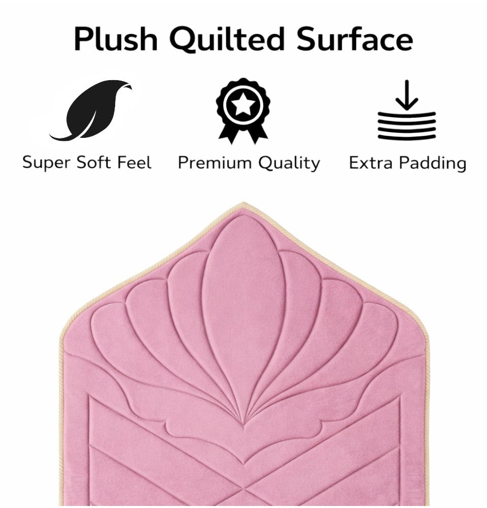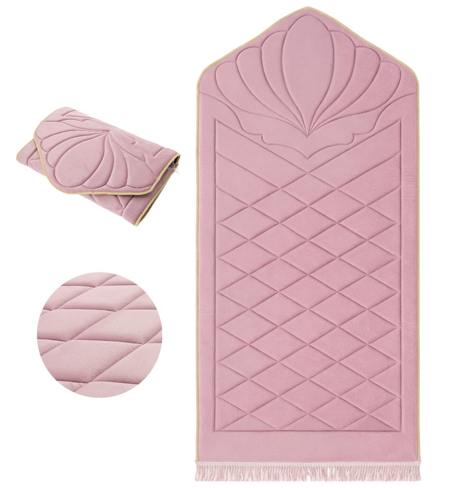 Quilted Foldable Foam Velvet Prayer Rug Safaa - Rose Pink