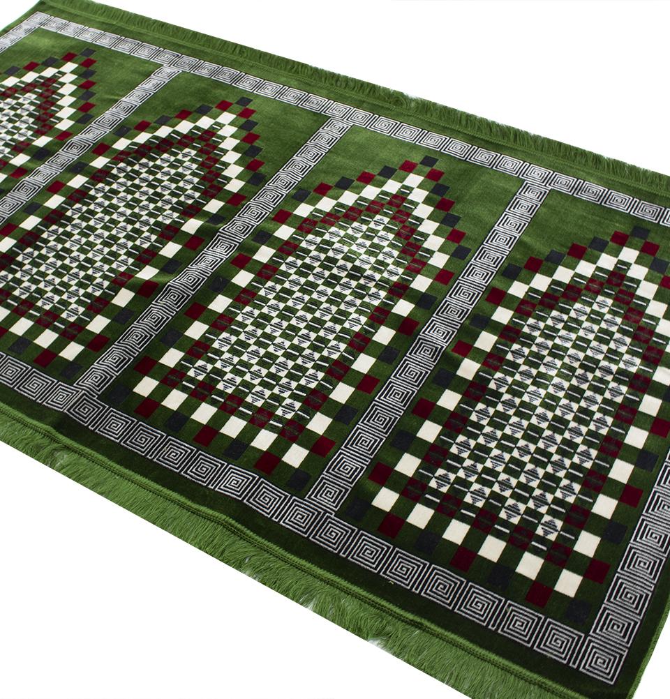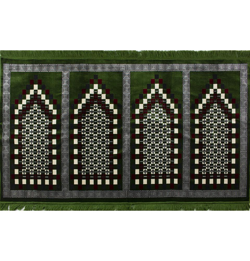 Wide 4 Person Masjid Prayer Rug - Geometric Spirals Green